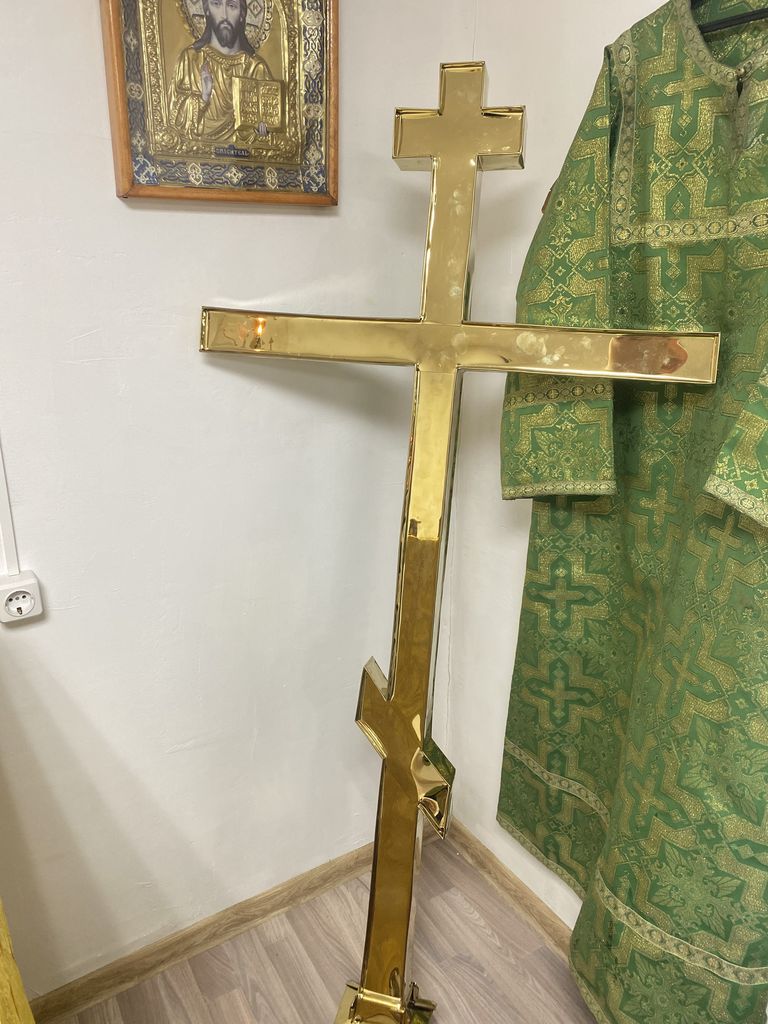 Данный крест установлен вместо временного, который изначально был ветхим и сильным порывом ветра был снесен.