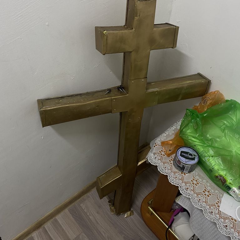 Новый же крест, выполненный из булатного железа, был изготовлен Донецким умельцем Гавриневым Николаем Михайловичем и в кратчайшие сроки был доставлен в посёлок.