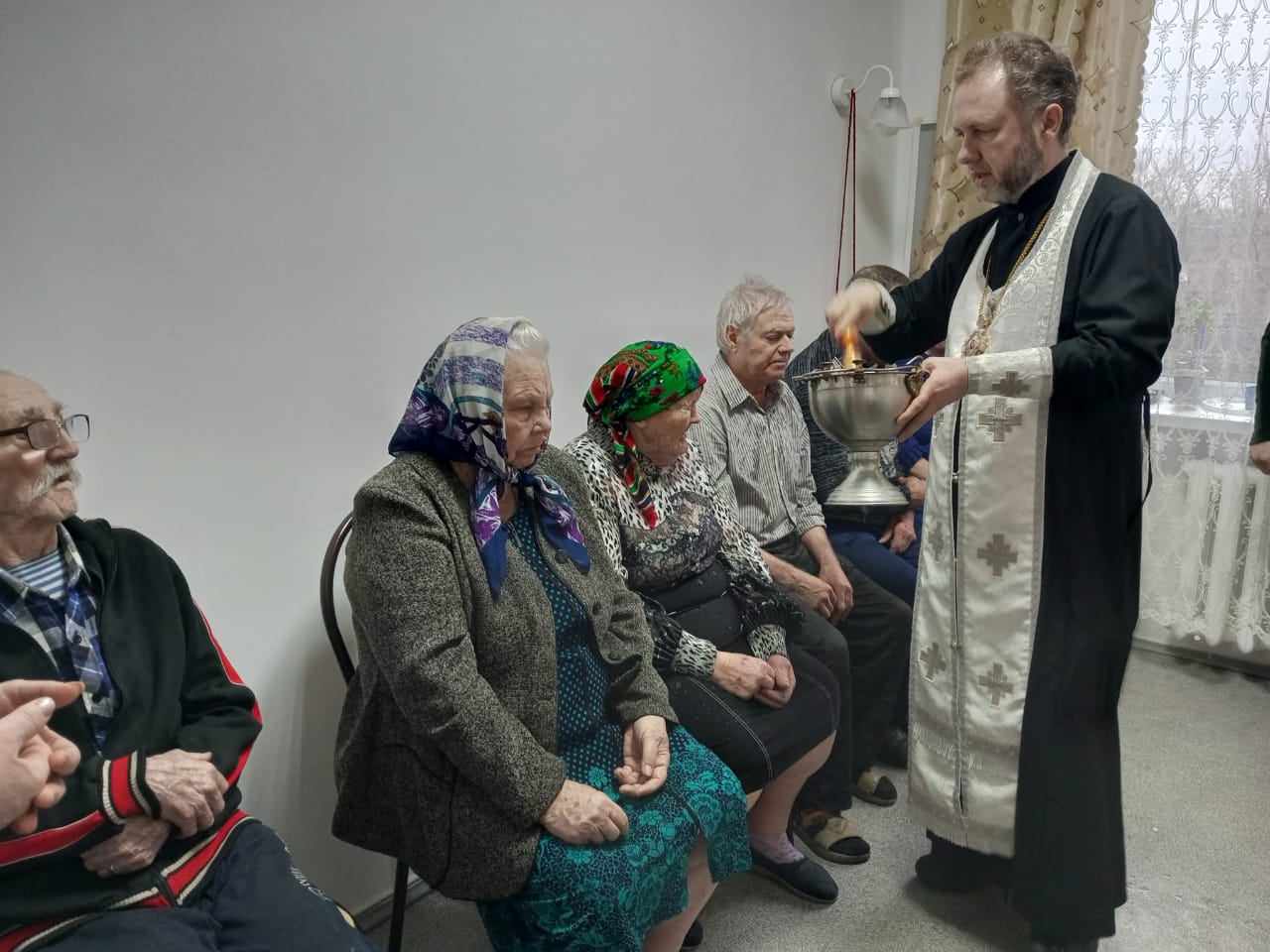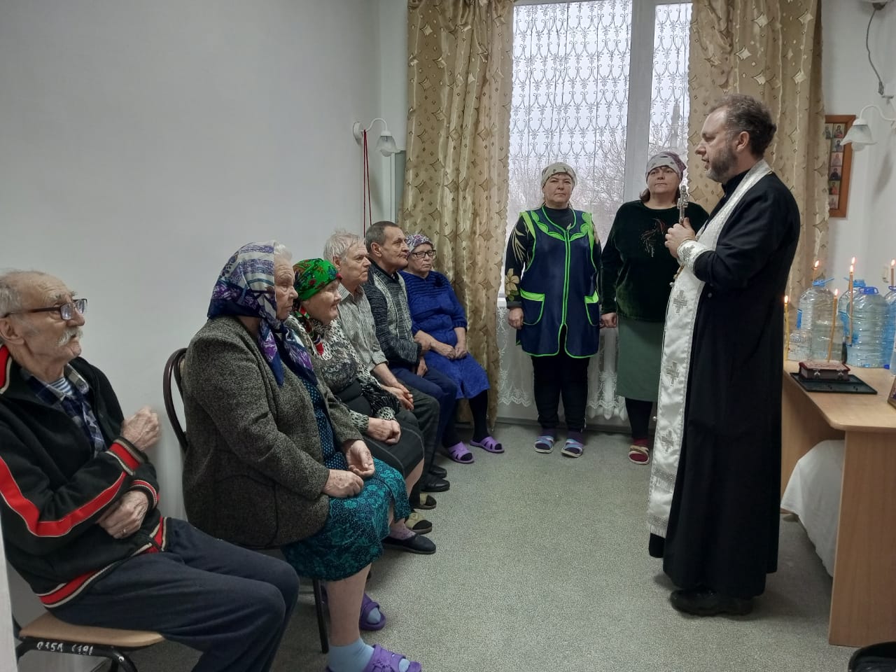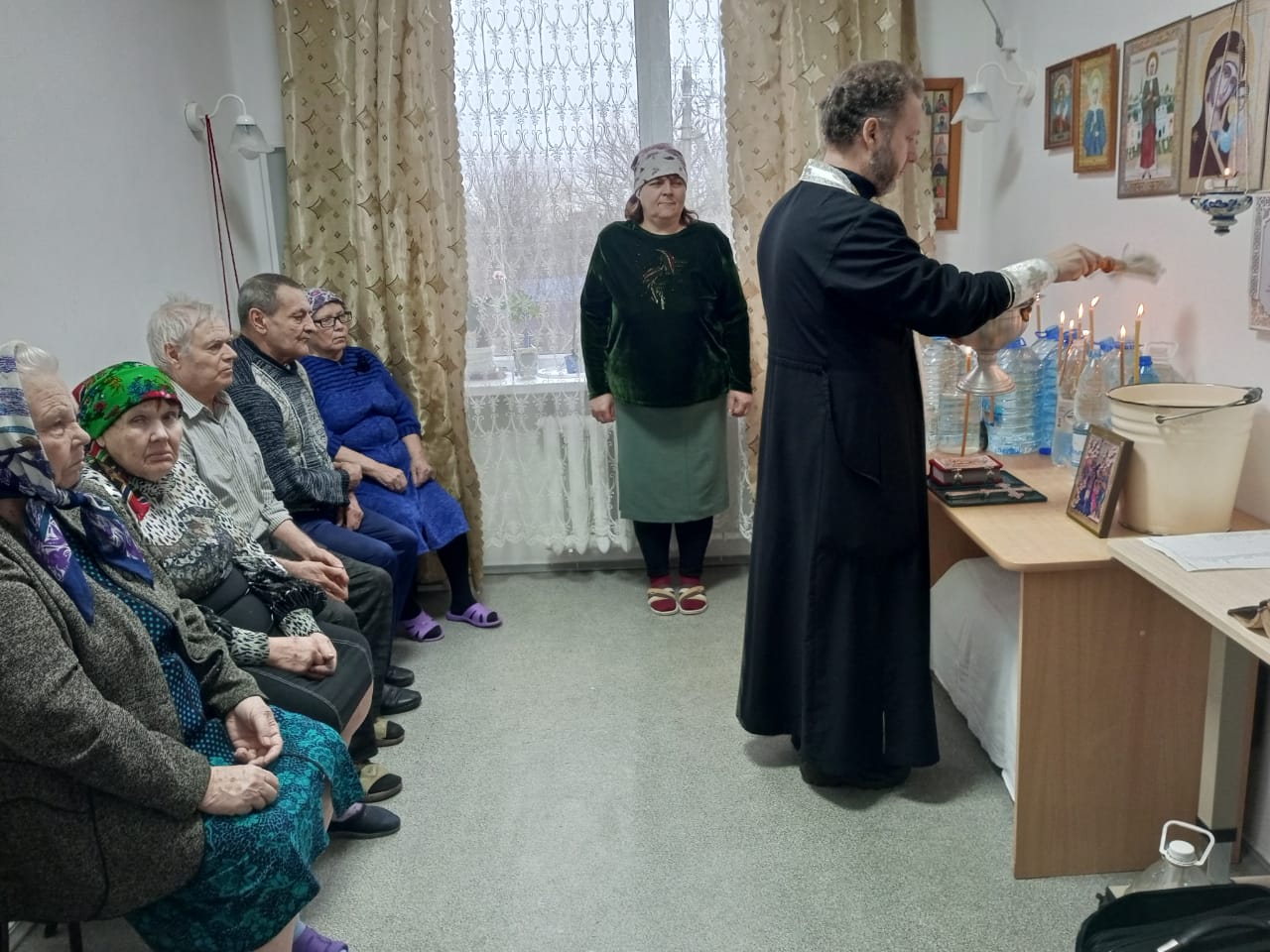 Священник рассказал о великом празднике Богоявления и его значении для каждого христианина, а затем окропил святой водой работников и постояльцев дома престарелых.