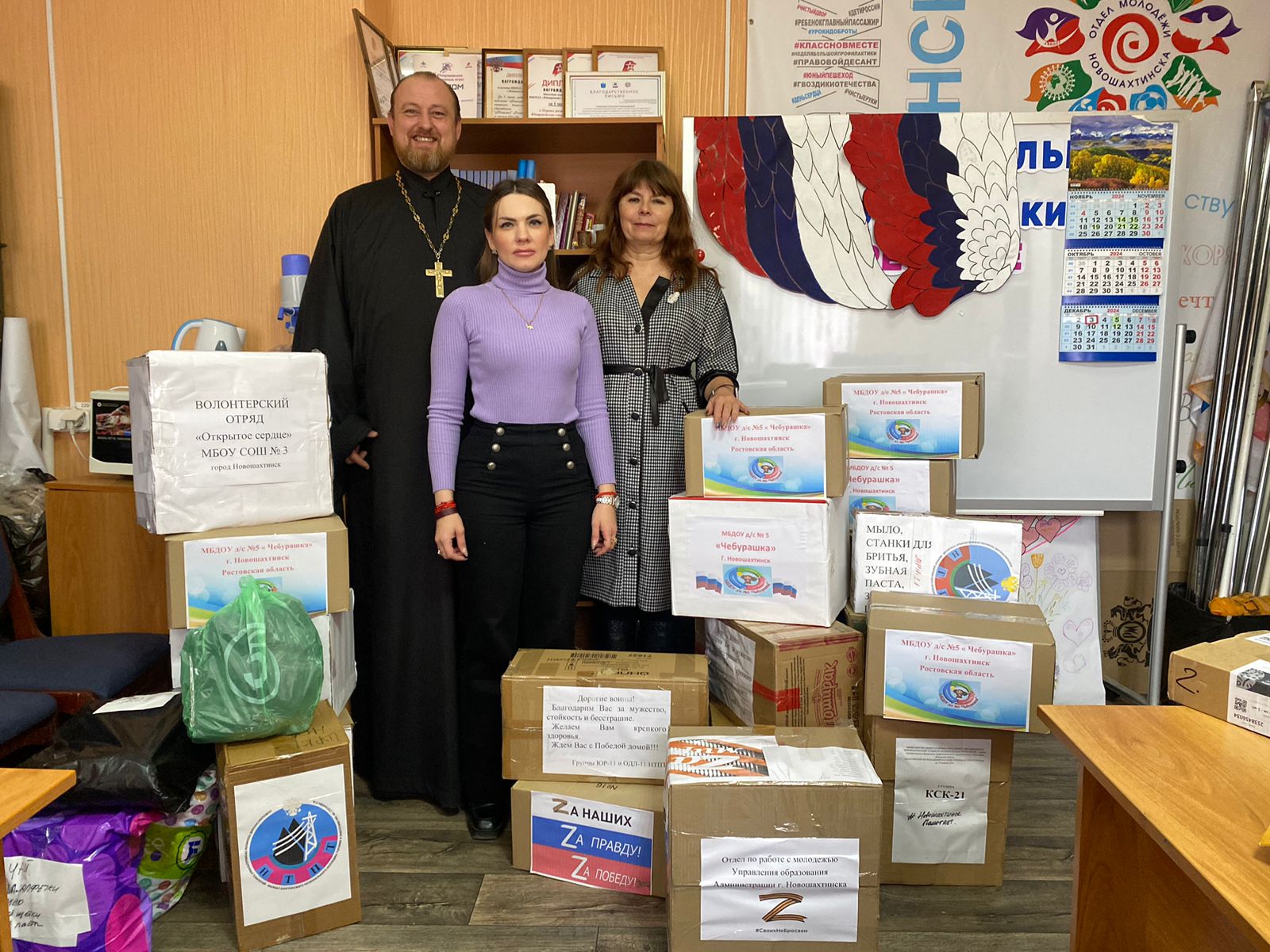 Протоиерей Роман Амплеев, настоятель храма в честь Донской иконы Божией Матери, благочинный приходов Новошахтинского округа, руководитель отдела по взаимодействиям Церкви с обществом Шахтинской епархии проект не только благословил и поддержал, но и сам активно как автоволонтер включился в акцию и помог перевезти собранную помощь в Донской храм, откуда, на следующий день, все забрали военнослужащие медбата на передовую. Бойцы от души поблагодарили всех сопричастных за внимание к ним и понимание нужд раненых. Пусть эта первая акция даст старт большой плодотворной работе, которая объединит всех жителей нашего города. Выражаем благодарность отделу по работе с молодежью Управления образования Администрации города и всех, принявших участие за активную жизненную позицию и организацию этого нужного дела.