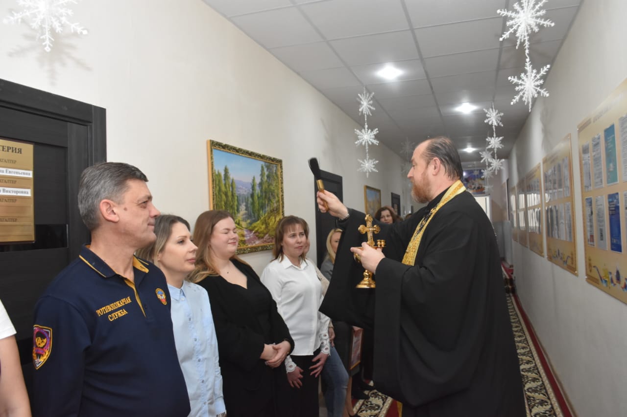 24 января 2025 года освятили здание и кабинеты управления Противопожарной службы Ростовской области. Присутствовали приглашенные: директор ДПЧС Ростовской области Нудгин П.В., заместитель директора Бандюков В.С., протоиерей.
