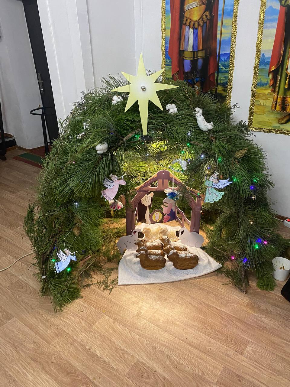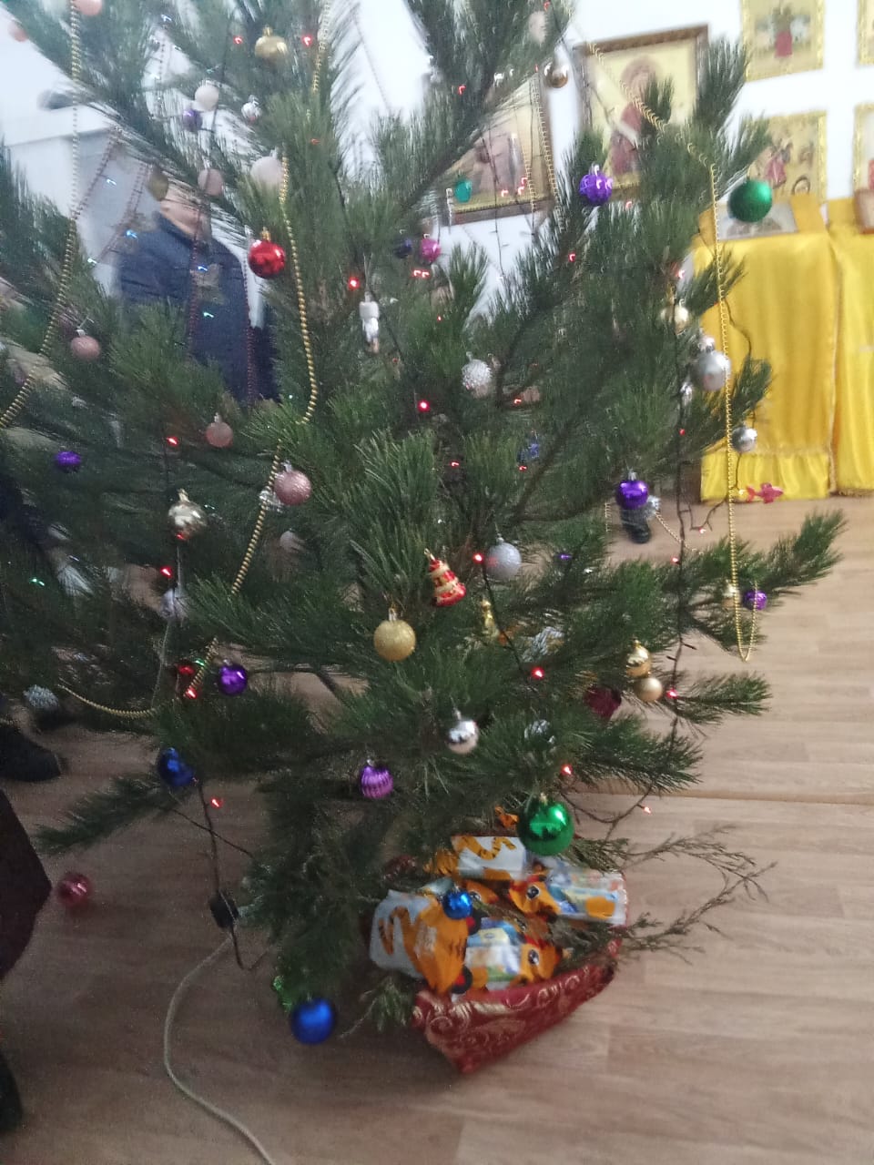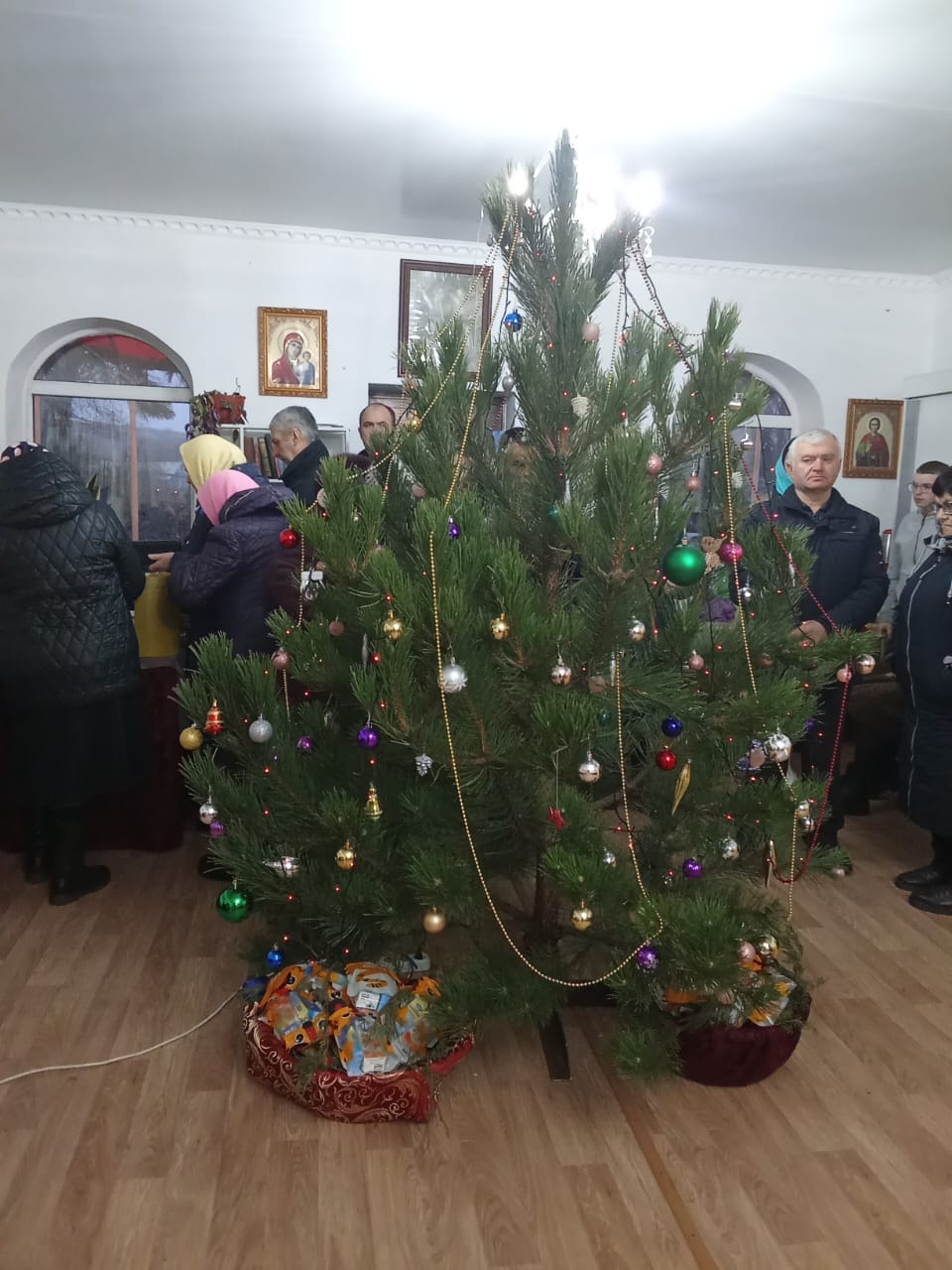 В завершение богослужения настоятель храма иерей Иоанн Агаев провел конкурс для детей и вручил Рождественские подарки. По окончании службы для всех верующих была устроена праздничная трапеза, которая сопровождалась радостным общением и Рождественским пением колядок.