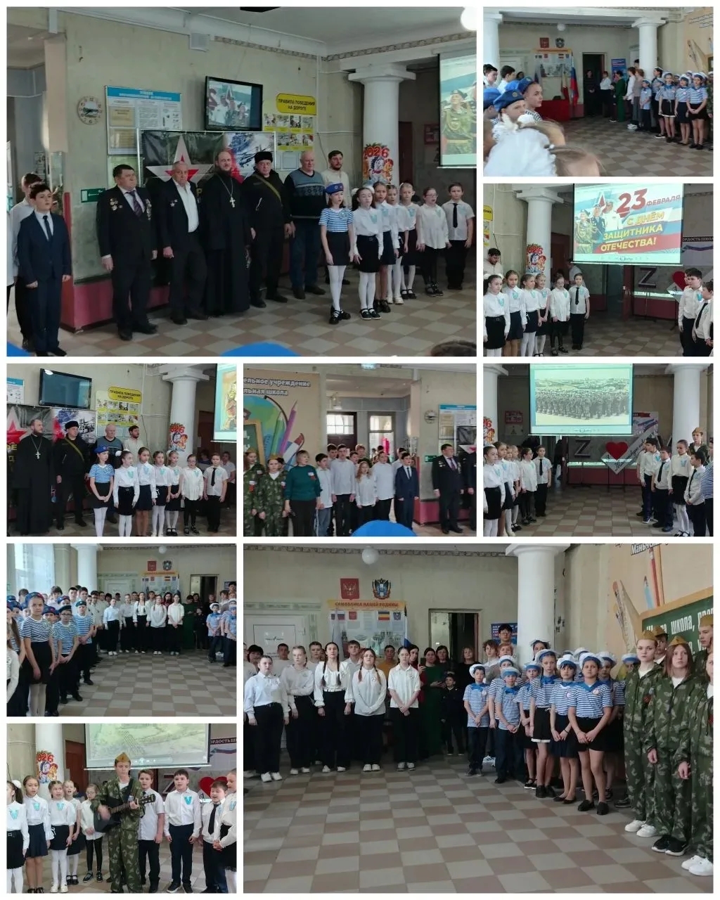 Священник поздравил всех с наступающим праздником, пожелал здоровья духовного и телесного, успехов в учёбе и спортивных достижений. В своём обращении он отметил важность воспитания молодёжи в духе патриотизма на примере подвига воинов Великой Отечественной войны, локальных конфликтов и участников специальной военной операции.