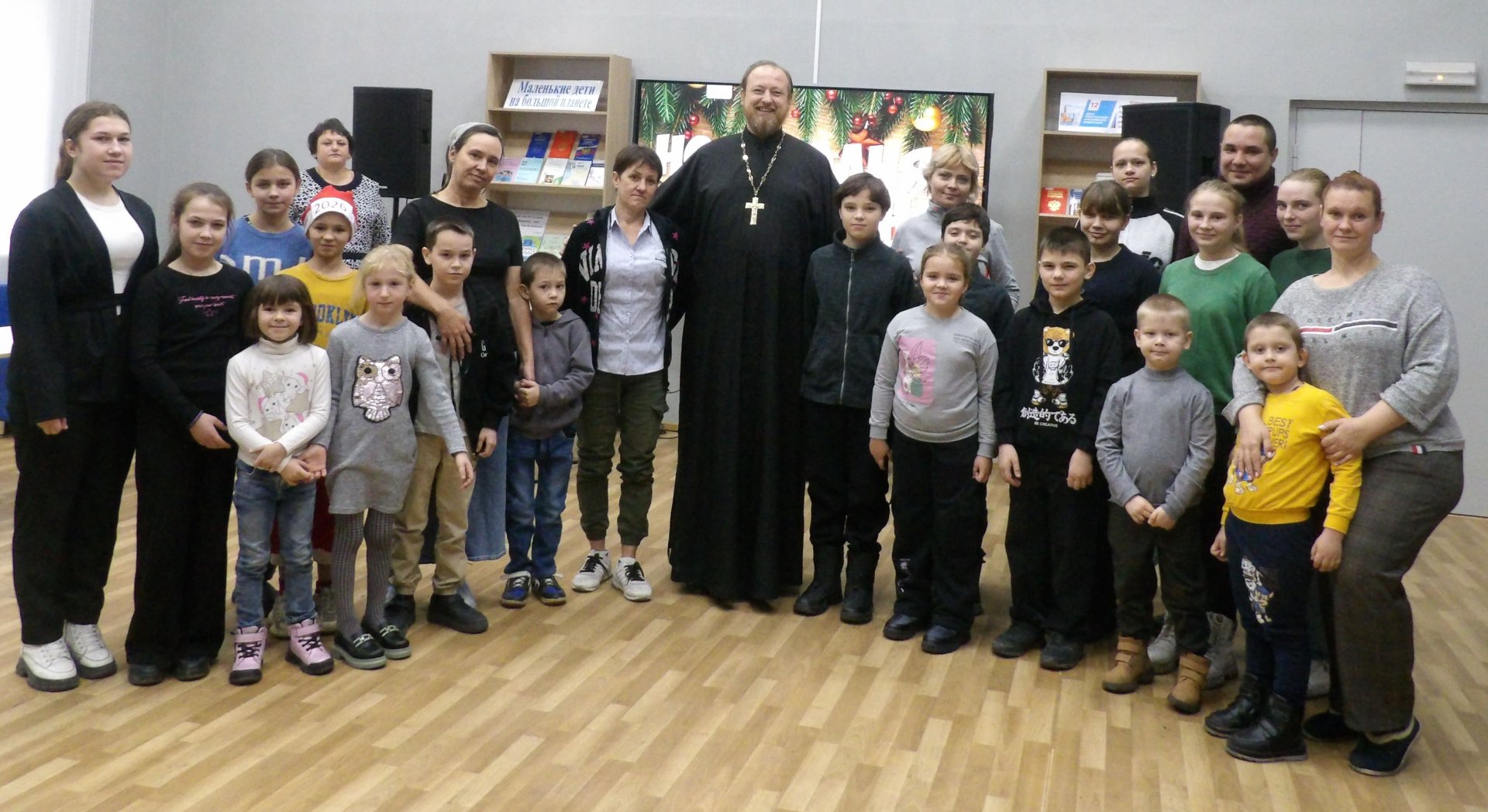 Слово для поздравления было предоставлено протоиерею Роману Амплееву, настоятелю храма Донской иконы Божьей Матери. Отец Роман обратился к ребятам с речью о пользе чтения книг, пожелал всем семьям мира, добра и благополучия.