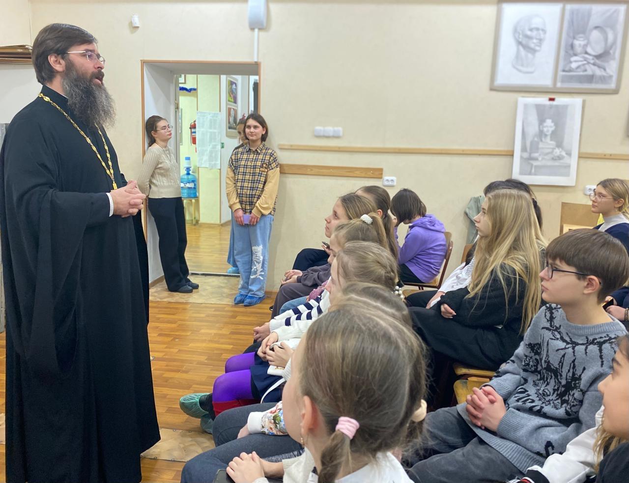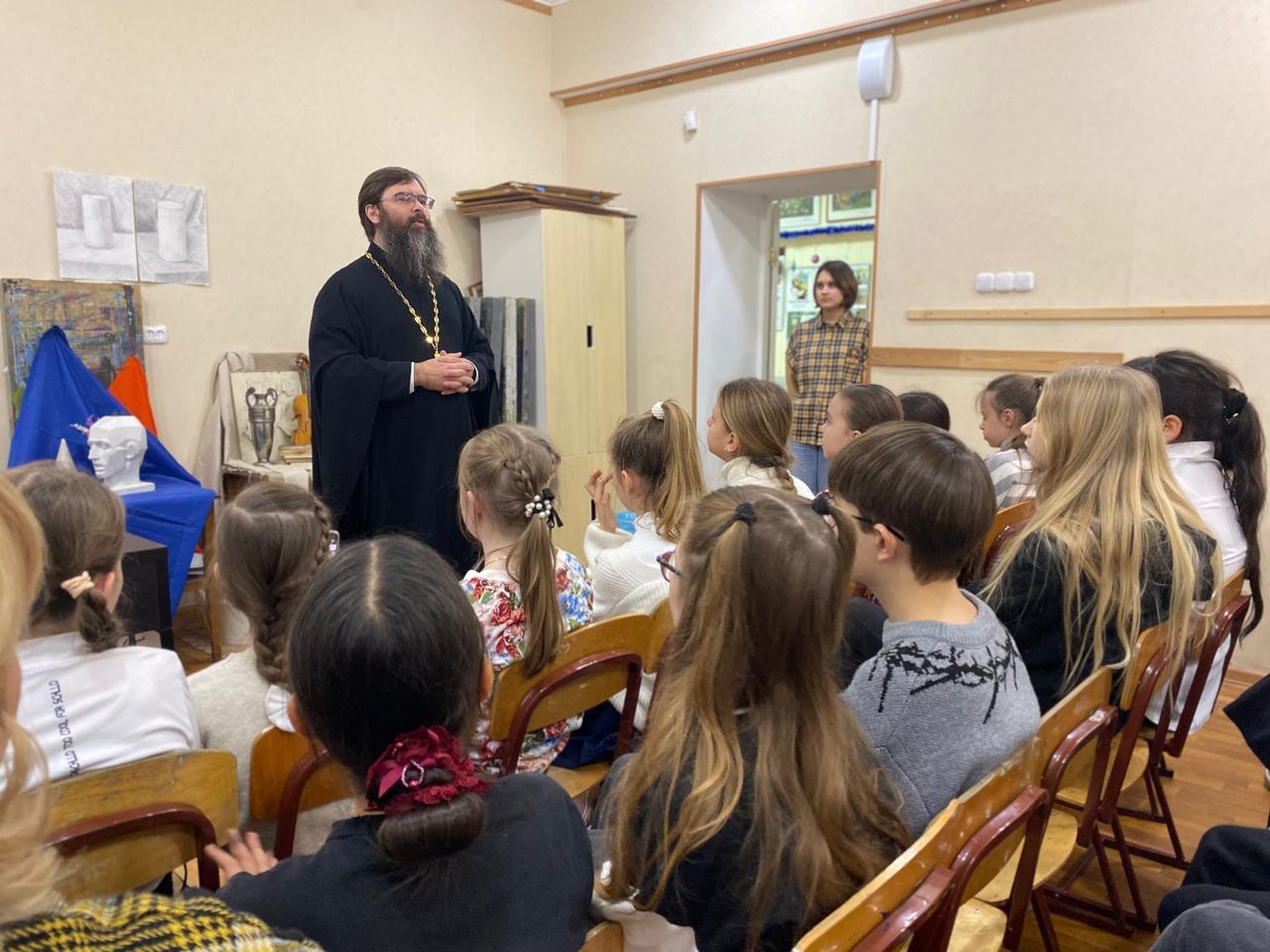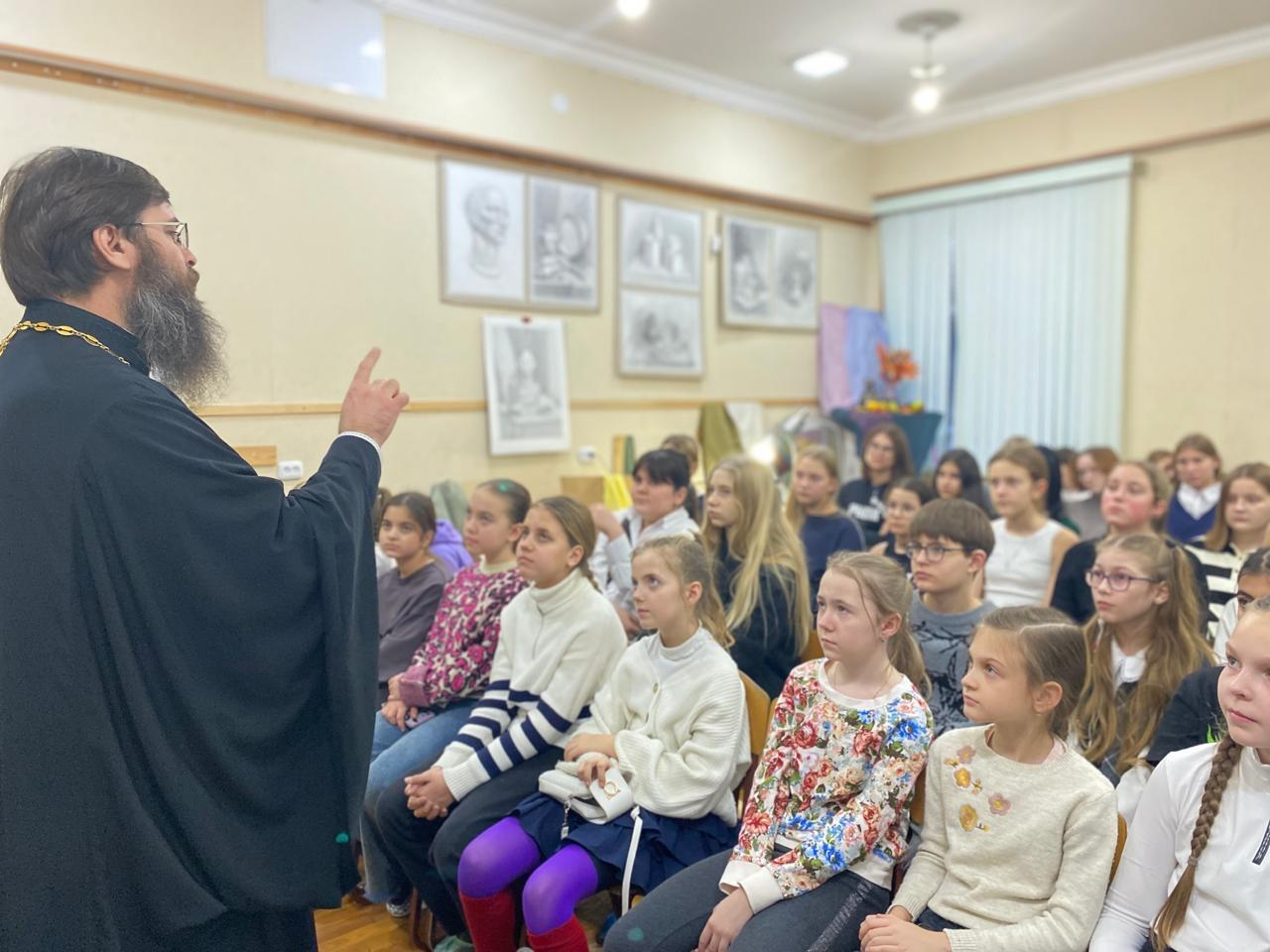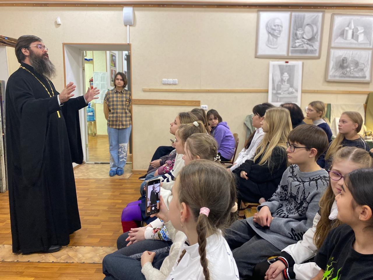 В МБУ ДО г. Шахты "Детская школа искусств" структурном подразделении центре искусств им.В.А.Серова состоялась встреча с представителем духовенства иереем Александром Теличкиным, благочинным приходов Александровск-Грушевского округа, настоятелем Покровского кафедрального собора г.Шахты на тему «Духовное здоровье молодежи».