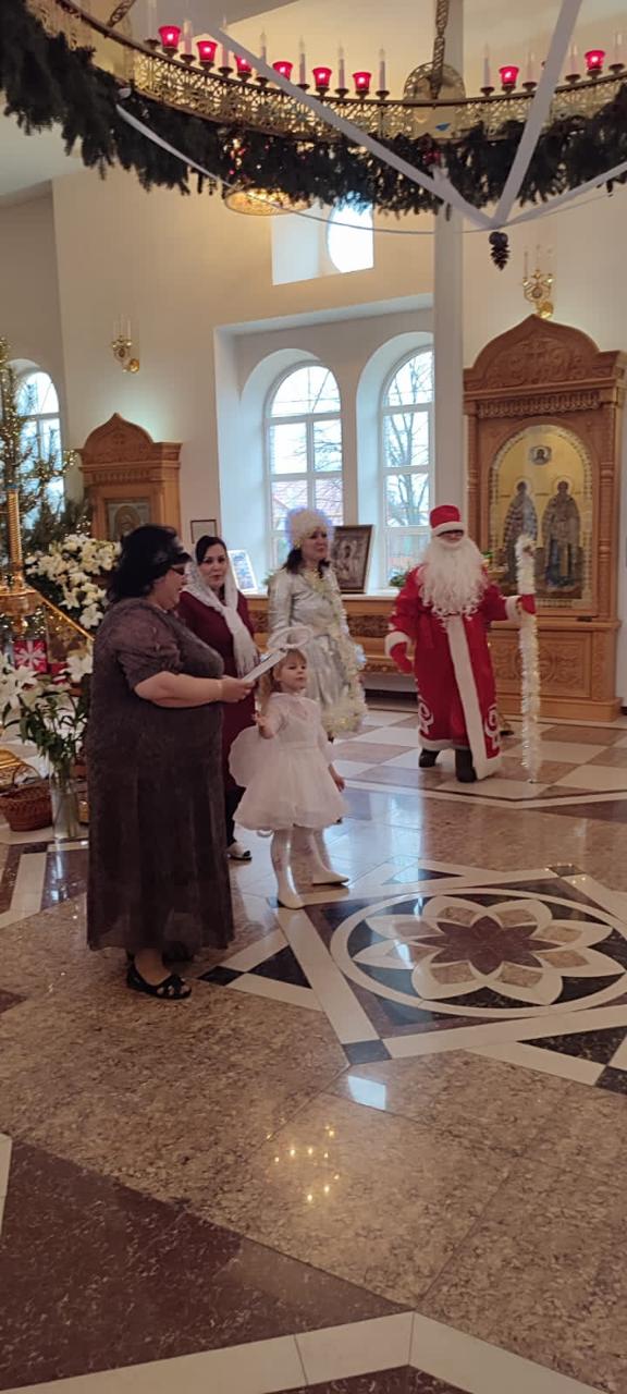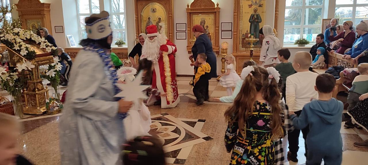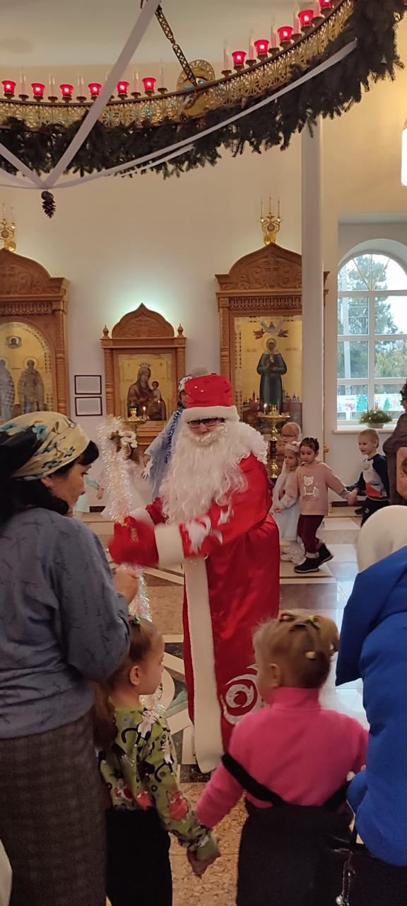 Конечно, ни одна новогодняя елка не обходится без Деда Мороза и Снегурочки. Сегодня, под звонкий детский смех и в атмосфере радости, в храм пришли главные герои праздника, которых дети с нетерпением ждут каждый год.