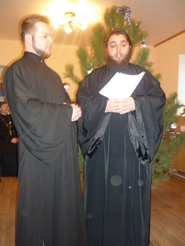 Неожиданным и радостным подарком было прибытие гостей – двух клириков Покровского кафедрального собора г.Шахты – архидиакона Варнавы (Максименко) и диакона Георгия Грошева, которые исполнили большое количество рождественских песнопении.