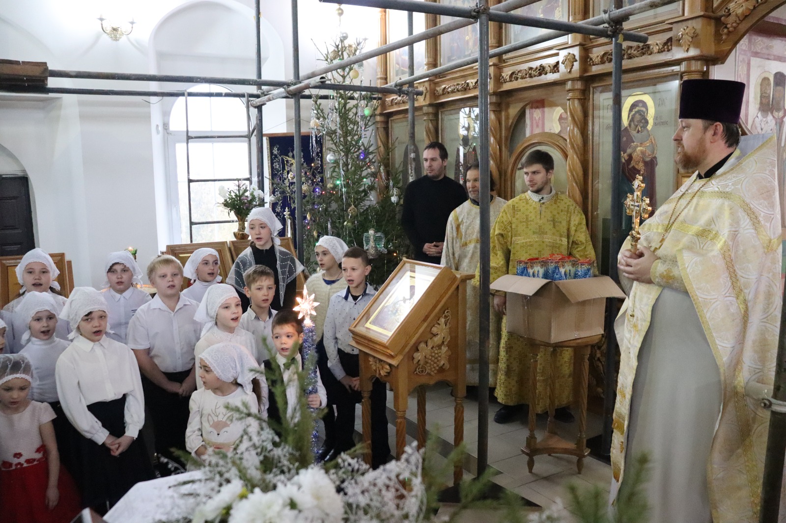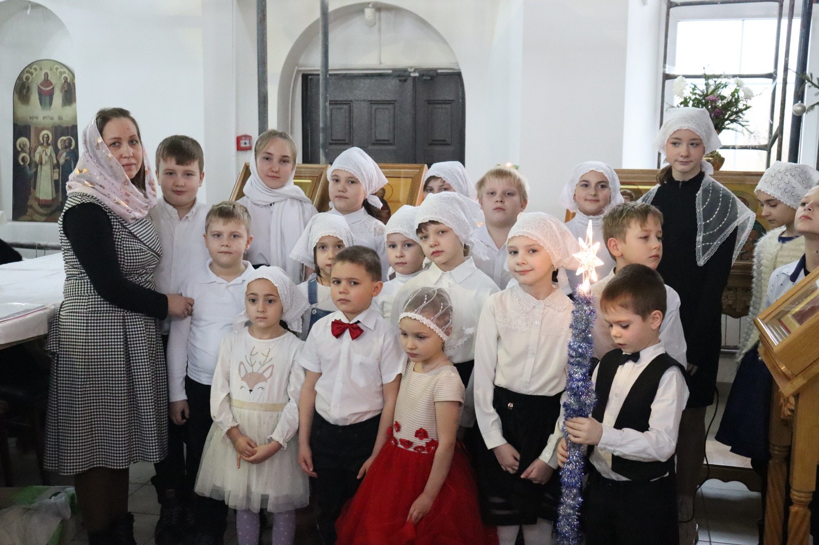 В дни Святок дети из воскресной школы «Светочъ» поздравили прихожан Донского храма