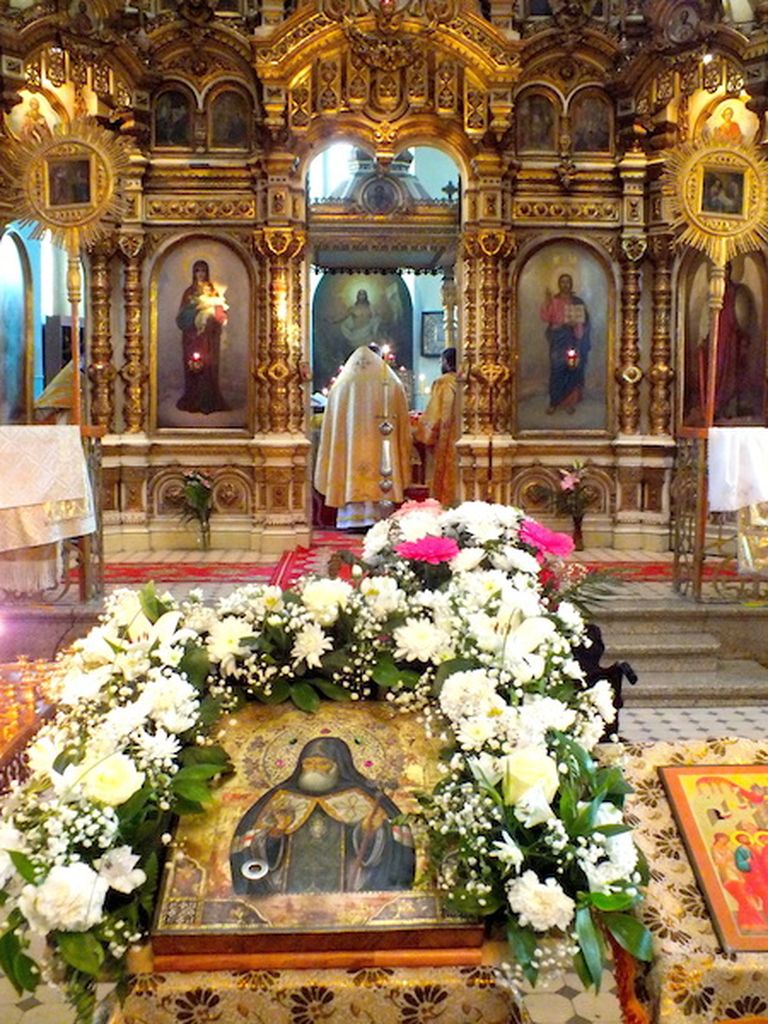 Завершилось праздничное соборное богослужение молебном и крестным ходом. И.о.благочинного иерей Владимир Татаркин поздравил настоятеля подворья и вручил ему букет цветов, а также, обратившись к настоятелю Матронинского храма иерею Александру Барановскому, передал ему в дар частицу мощей святой Матроны Московской.