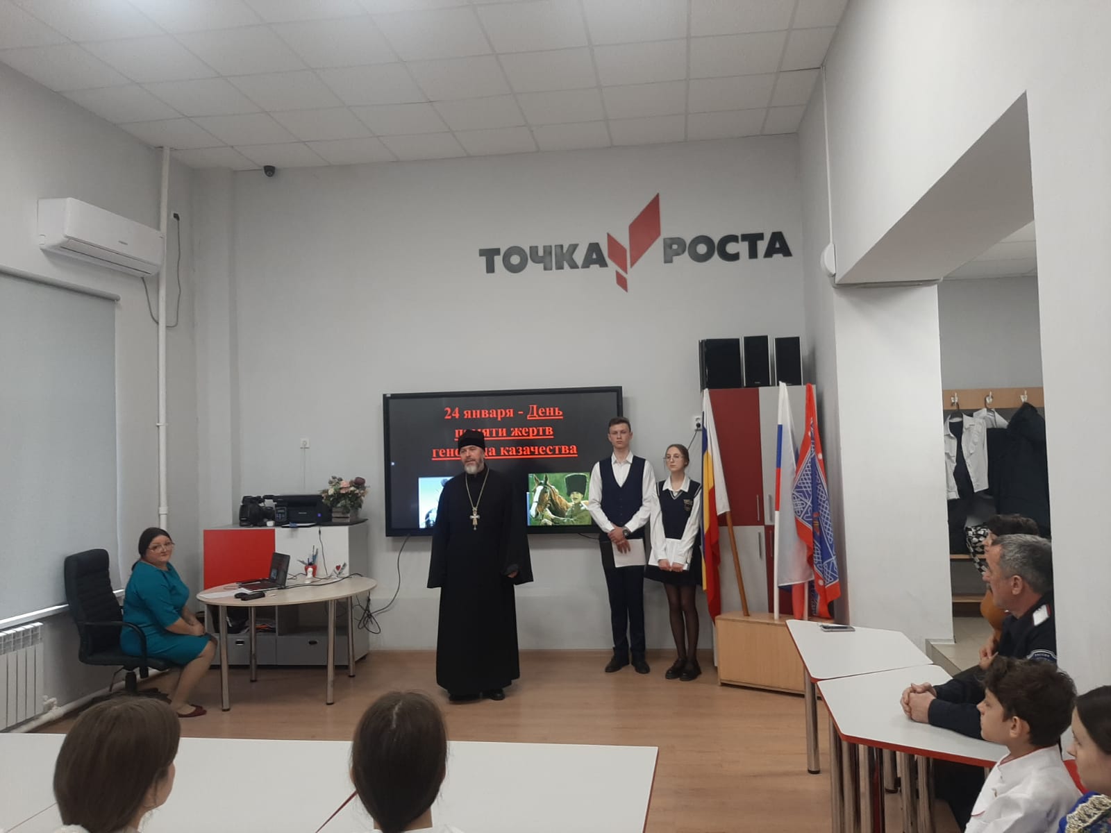Руководитель епархиального Отдела по взаимодействию с казачеством протоиерей Александр Маштанов принял участие в уроке, посвященном памяти казаков, пострадавших в годы репрессий, после печально известного указа правительства большевиков об уничтожении казачества, как класса. Учащиеся 8-х классов вспомнили славные страницы истории Отечества с участием казачества, отметили великий вклад казаков в сражения и битвы с врагами. В своём выступлении отец Александр указал на одну из причин, которая привела к революции 1917 года. Это ослабление веры, потеря духовно-нравственных ориентиров, забвение заповедей Господних. Священник призвал казачью молодёжь хранить веру православную, чтить память предков-казаков, быть прилежными учениками. После урока отец Александр, атаман Багаевского юртового Казачьего общества Бородин Александр Михайлович и директор школы Леванчук Наталья Анатольевна участвовали в открытии школьного казачьего мини-музея.