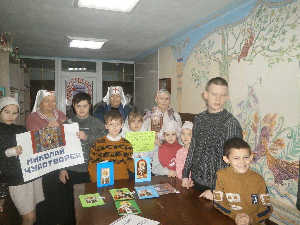 Воспитанники средней и старшей группы, под руководством помощника по религиозному образованию и катехизации Фартановой Р.И., подготовили и защитили проект «Николай Чудотворец». На творческом часе с преподавателями Шароновой Н.М. и Давидовой Н.Г. дети сделали открытки с молитвой Николая Чудотворца о помощи для воинов СВО и подготовили сувениры ангелов, сладкие подарки, написали письма поддержки нашим славным защитникам.