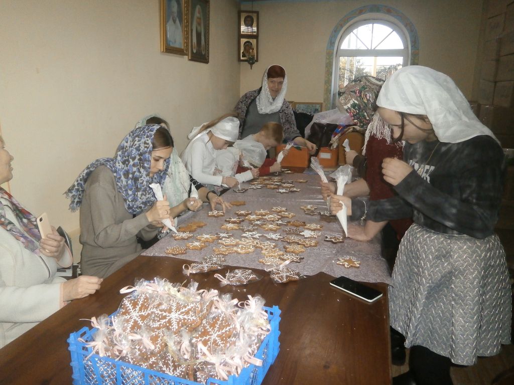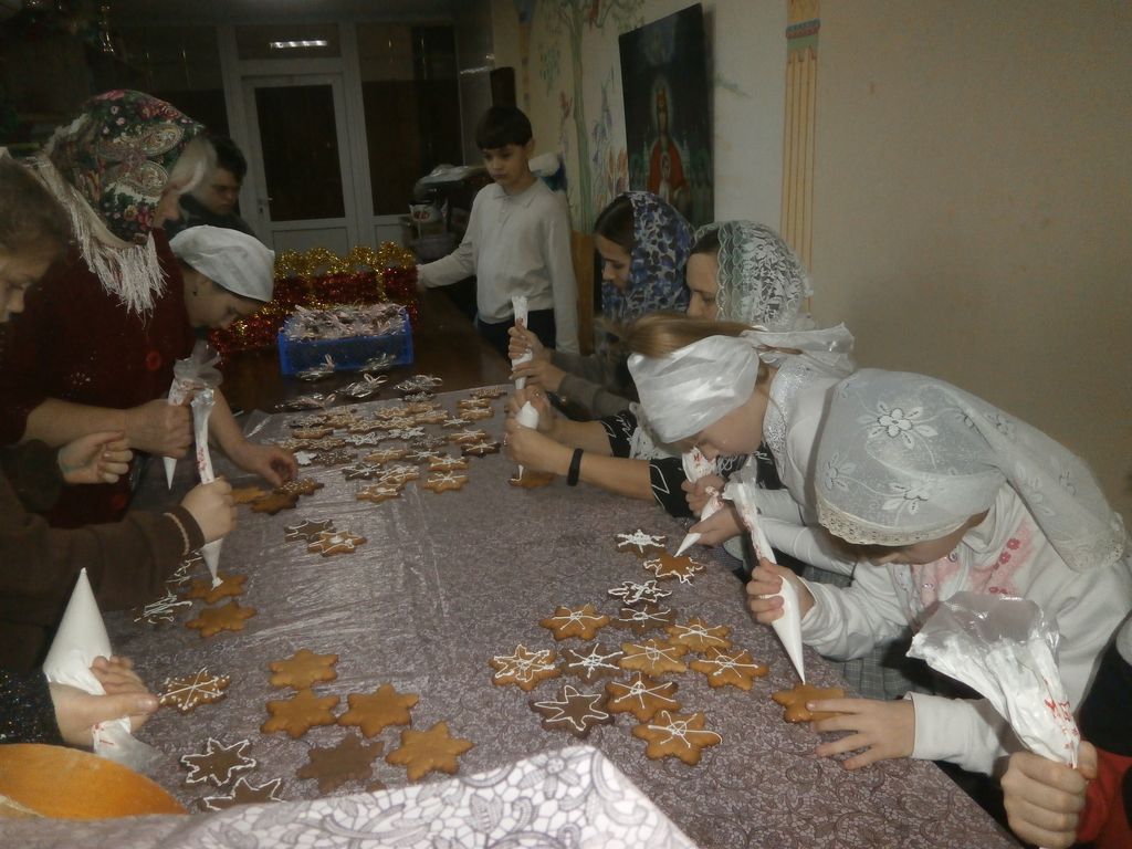Под руководством преподавателей Давыдовой Н.Г., Меняйловой М.Б., Шароновой Н.М. воспитанники изготовили и расписали для воинов Рождественские пряники по старинным рецептам, внеся свой вклад в доброе дело милосердия и помня, что вера без дел мертва. Кроме сладкого угощения для воинов сделали и открытки «С Рождеством и Крещением» и записали свое видеопоздравление «Мы христославы».