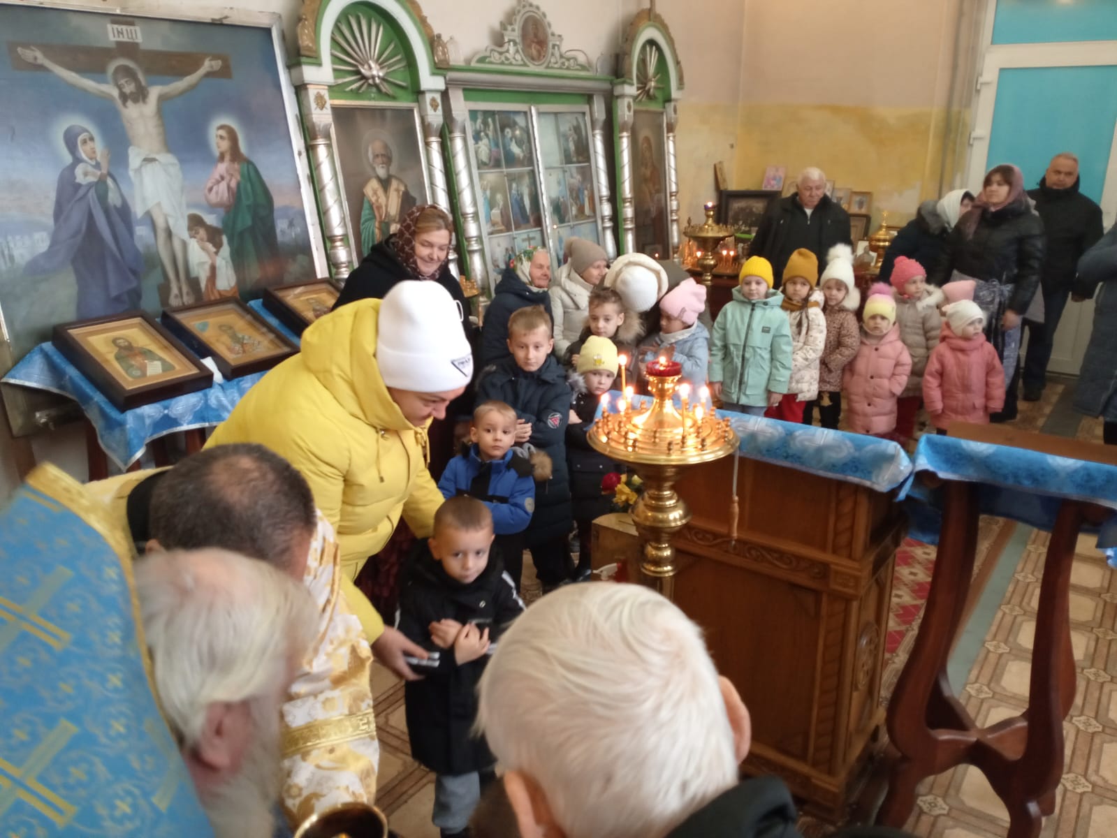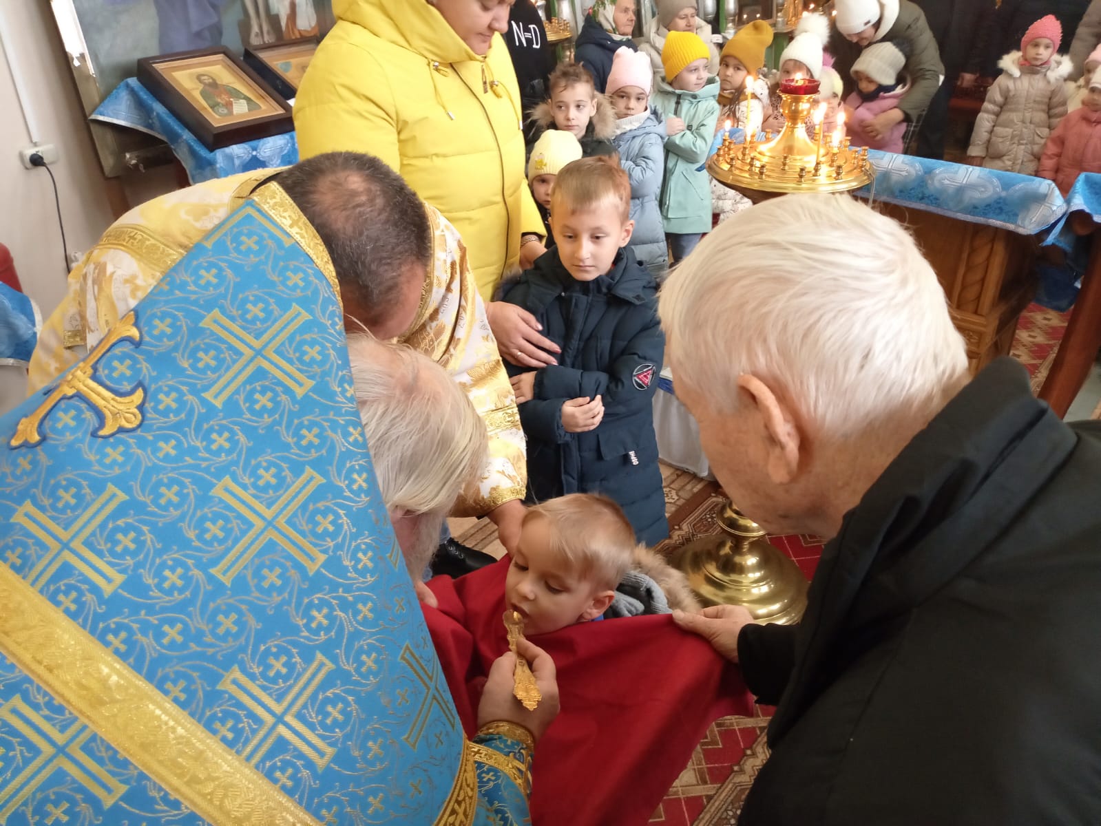 В праздник Введения во храм Пресвятой Владычицы нашей Богородицы и Приснодевы Марии за Божественной литургией в храме Рождества Пресвятой Богородицы х. Ажинов 24 воспитанника местного детского сада «Сказка» причастились Святых Христовых Таин.