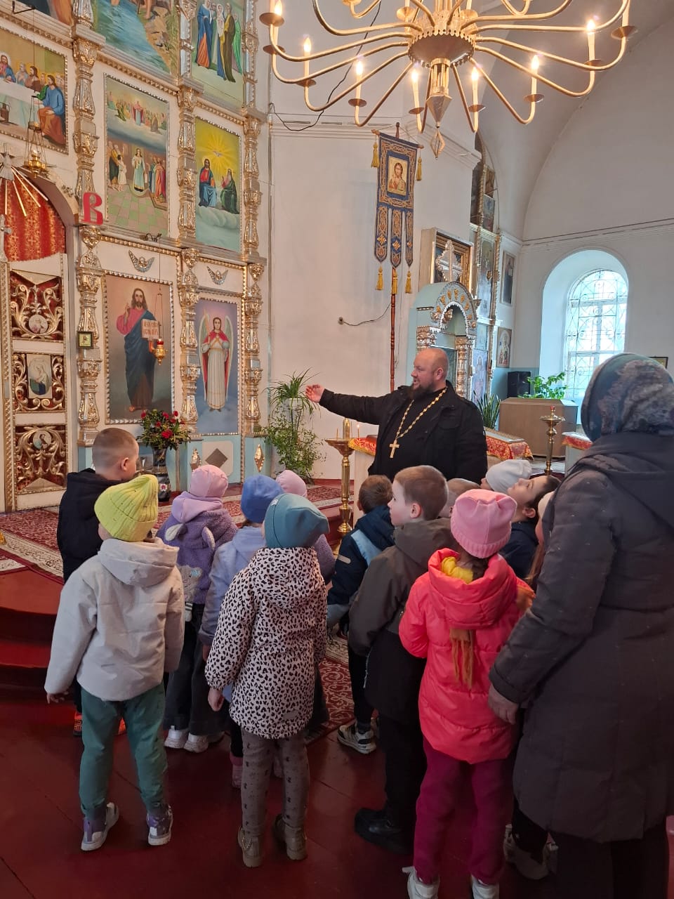У входа в храм детей и воспитателей встретил настоятель протоиерей Антоний Колистратов. Он познакомил ребят с интерьером церкви, показал иконостас и рассказал о праздновании Пасхи. Дети смогли поставить свечи и помолиться за своих родных и близких.