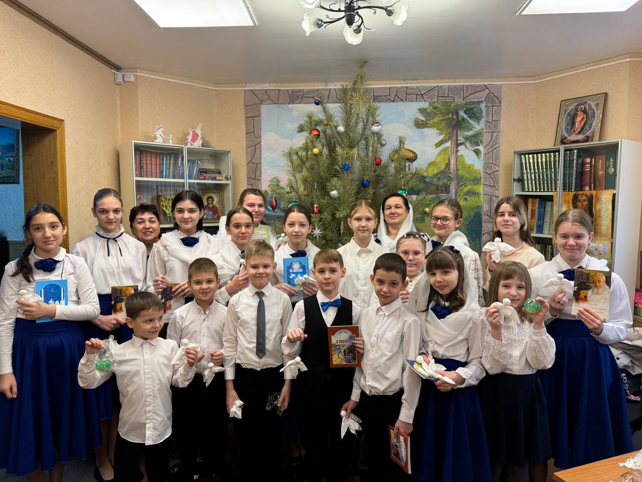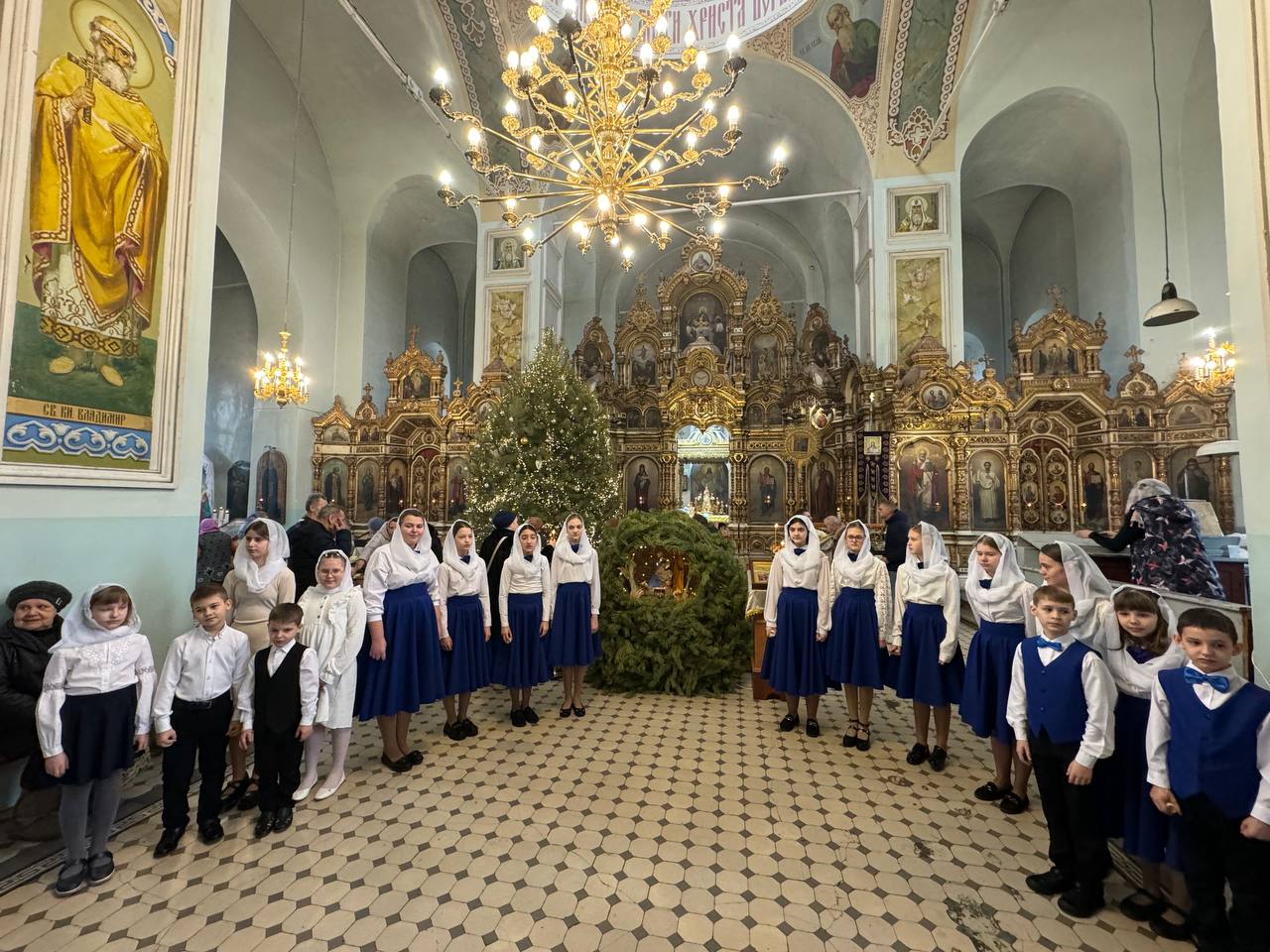 Воспитанники воскресной школы «Азы православия», совместно с вокальной группой ДШИ поздравили прихожан со светлым праздником Рождества Христова