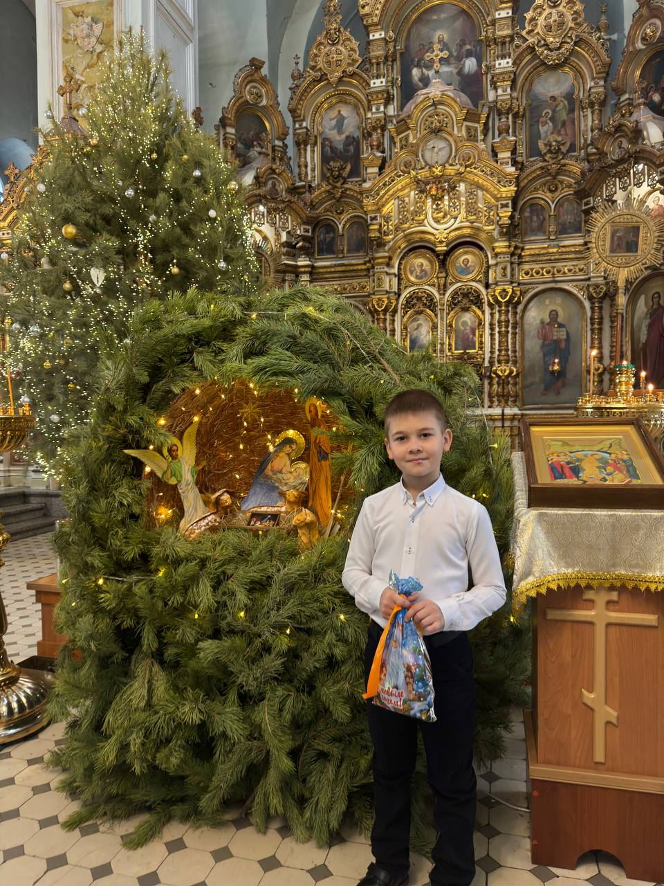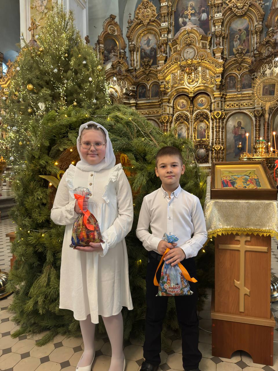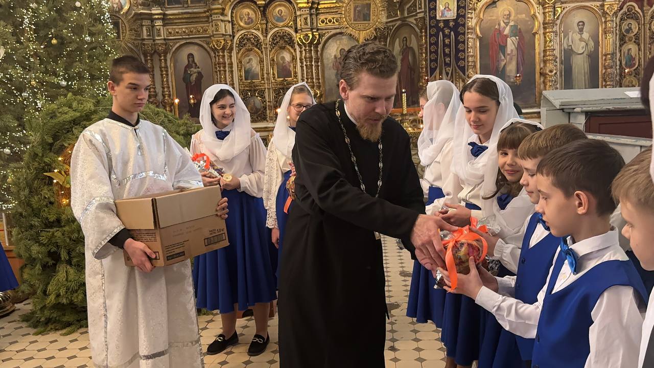 По окончании выступления отец Глеб поблагодарил всех участников концерта и их педагогов за поздравление и преподнёс всем сладкие Рождественские подарки.