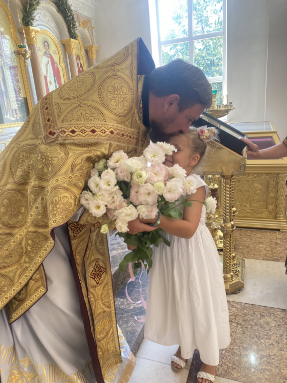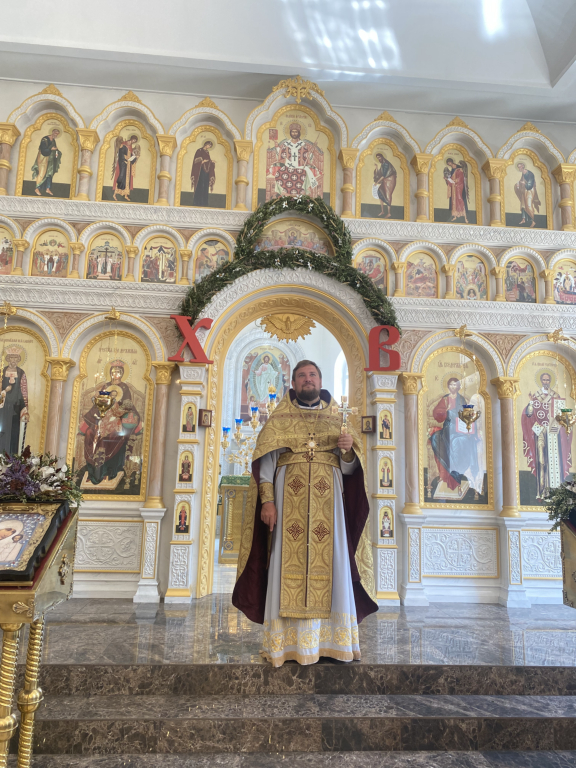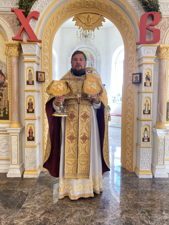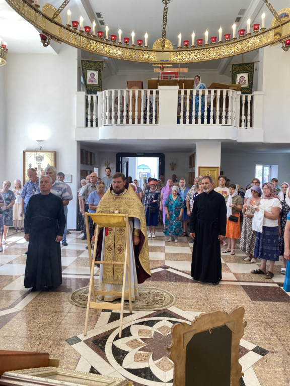 Праздничную Божественную литургию возглавил настоятель храма иерей Владимир Татаркин. За богослужением была вознесена молитва о мире.По окончании богослужения было совершено молебное пение в память о Крещении Руси.