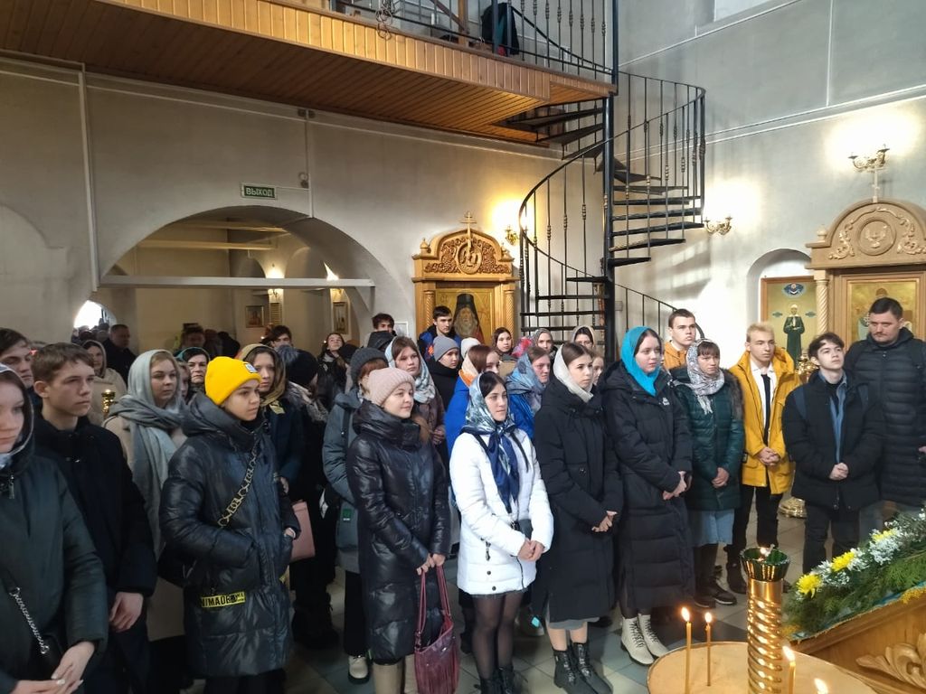 Священник поздравил всех присутствующих с праздником и зачитал послание Святейшего Патриарха Московского и всея Руси Кирилла по случаю празднования Сретения Господня и дня православной молодежи. Пастырь призвал молодых людей творить дела милосердия и добра, почитать своих родителей и наставников, и дал благословение на добрые дела и учение. После чего рассказал о своей молодости и учении, и пожелал всем собравшимся хороших отметок, благополучия в семьях и крепкого здоровья.