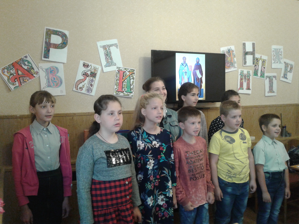 24 мая православные христиане празднуют День славянской письменности и культуры, вспоминая святых равноапостольных Кирилла и Мефодия. Урок, посвященный этому событию, прошел в воскресной школе «Азы Православия» Донецкого Успенского Архиерейского подворья.