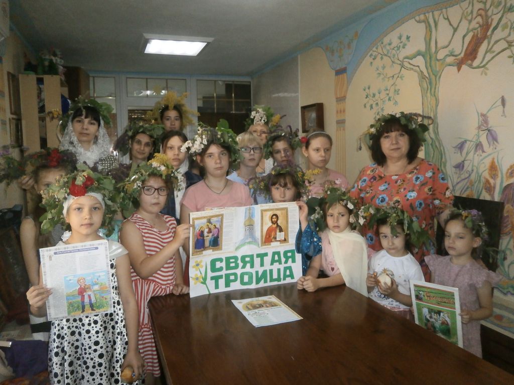 В воскресном лагере «Держава» при храме Державной иконы Божией Матери Донецкого благочиния прошел праздничный утренник «Святая Троица», который подготовили и провели с воспитанниками младшей и средней групп преподаватели Р.И. Фартанова, Г.А. Грапу, Н.М. Шаронова.