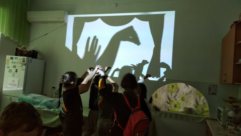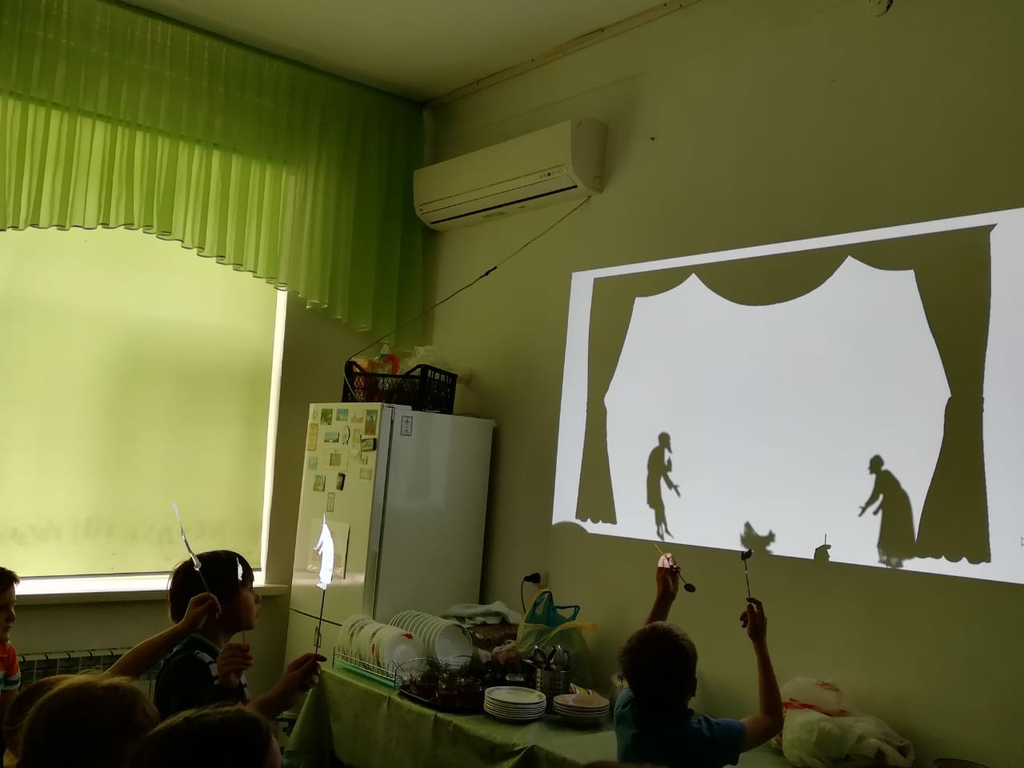 Вспоминая первый день сотворения мира, дети отделяли свет от тьмы в теневом театре. Воспитанники с удовольствием мастерили фигурки силуэтов героев сказок «Репка» и «Курочка Ряба», репетировали, а затем показывали свои сказки. Младшая группа также имели возможность попробовать себя в качестве артистов театра теней.