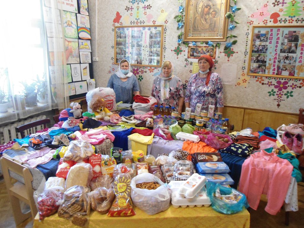 Неравнодушные волонтеры прихода под управлением руководителя Ирины Ивановны Носковой собрали и передали нуждающимся людям собранную необходимые продукты и вещи: хлеб, чай, сахар, муку, печенье, макароны, рис, гречку, консервы, растительное масло, а также теплую и летнюю детскую и взрослую одежду.