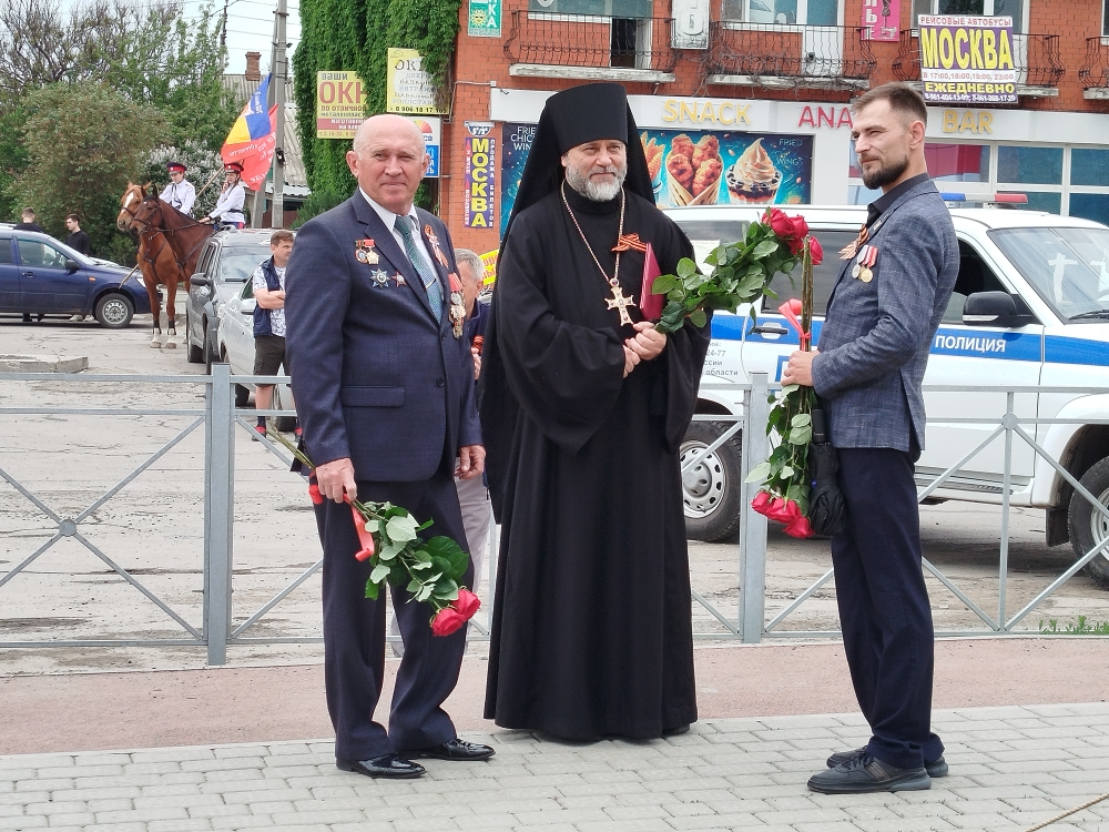 К землякам и гостям города обратился отец Димитрий. Он отметил, что подвиг наших предков, погибших, защищая свое Отечество, - это драгоценная цена жизни нынешних поколений.