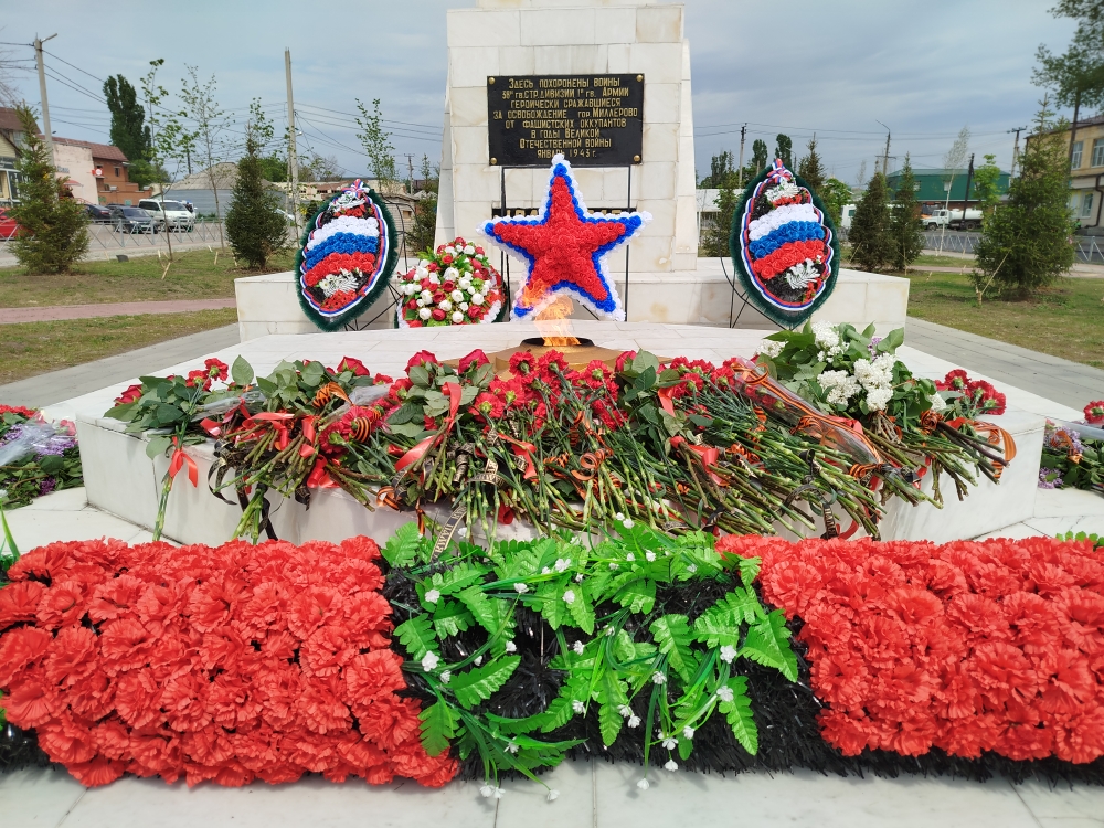 В преддверии 80-летия Победы советского народа в Великой Отечественной войне, 7 мая, на ул. 3-го Интернационала состоялось возложение гирлянды Славы, венков и цветов к мемориалу «Вечный огонь». Почетные гости вместе с жителями города и района почтили память воинов – освободителей Миллерово от немецко-фашистских захватчиков.