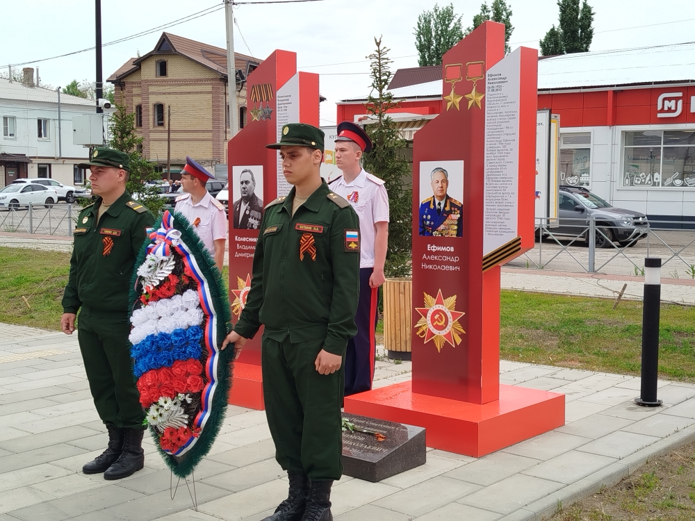 Памятное событие прошло на обновленной аллее, ведущей к «Вечному огню». В рамках работ по благоустройству, проведенных к 80-летию Победы, здесь установлены мемориальные стелы в честь 17 героев из Миллеровского района, а также создана новая флаговая композиция, что добавило торжественности этому значимому месту.