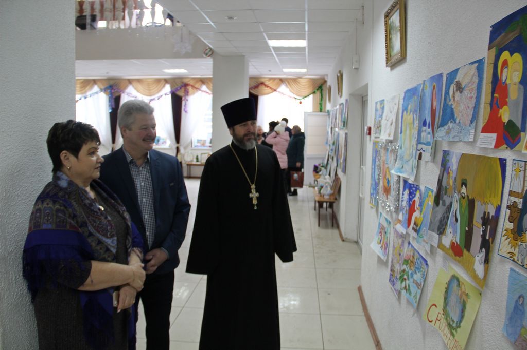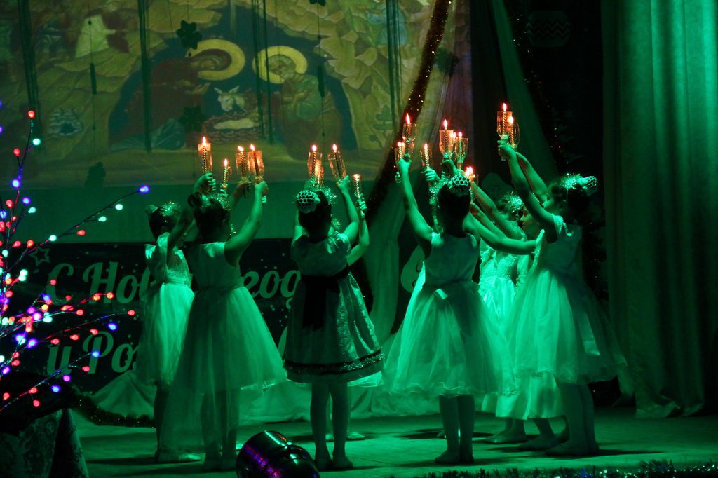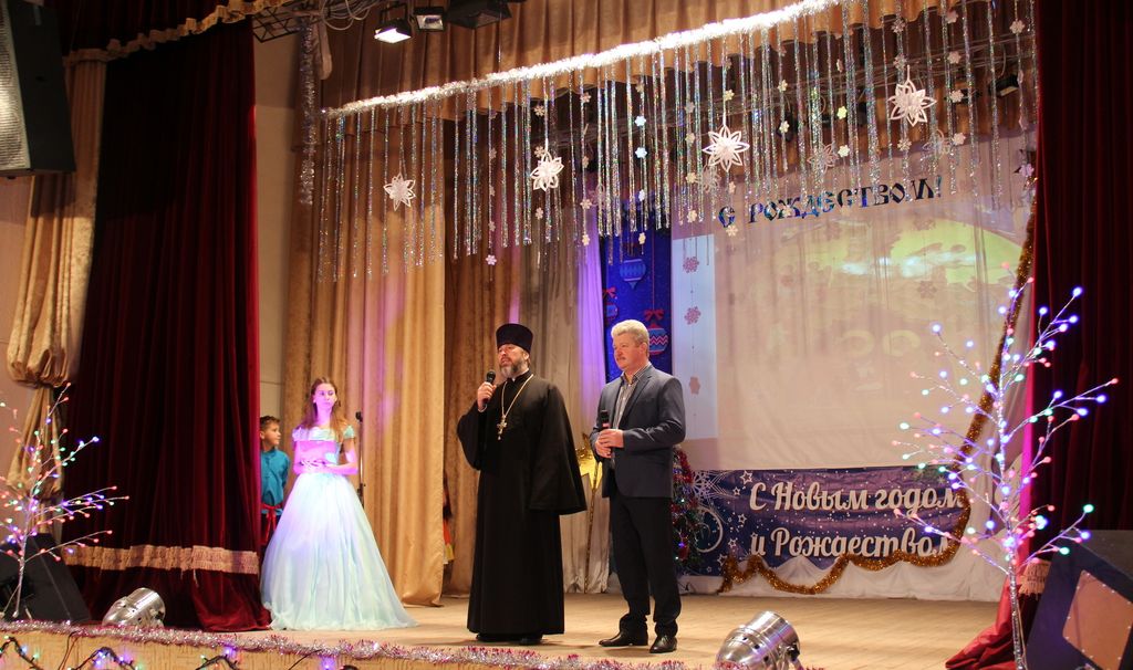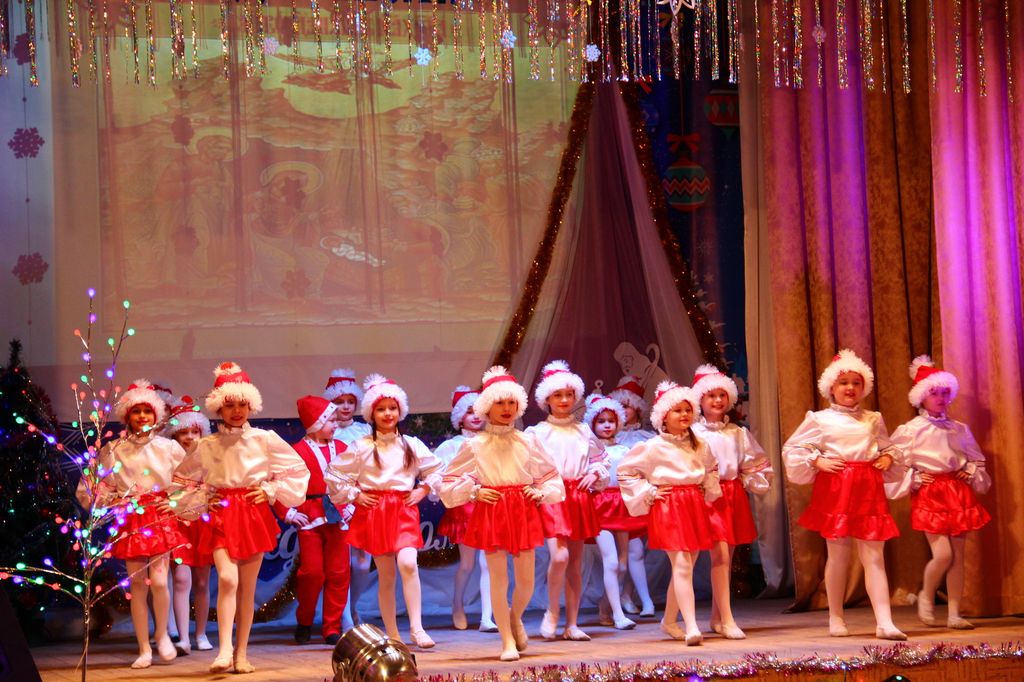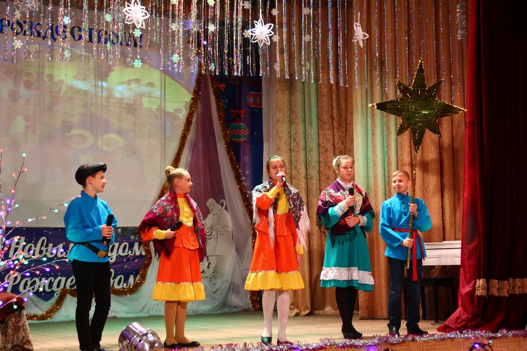 В районном доме культуры собрались взрослые и дети, чтобы вместе отпраздновать знаменательное событие – Рождество Христово, вместе порадоваться и разделить радость праздника. Фойе ДК оформлено красочной ёлкой и рождественской выставкой поделок и рисунков. Какие у нас талантливые дети, родители и преподаватели! Какое множество разнообразия работ! За участие и победу в конкурсе учащиеся школ и воспитанники детских садов района получают грамоты, духовную литературу и сувениры. Воспитанники школ, детской школы искусств, детской спортивно-юношеской школы и центра дополнительного образования показывают чудесную концертную программу. Здесь чтение стихов и прозы, танцевальные номера, песни, посвящённые рождению Господа Иисуса Христа, и миниатюры. Красочные, нарядные костюмы, душевность исполнения создают атмосферу семейности, уюта и тепла.