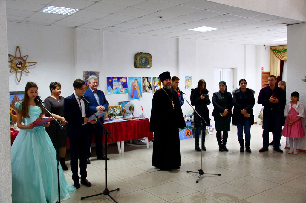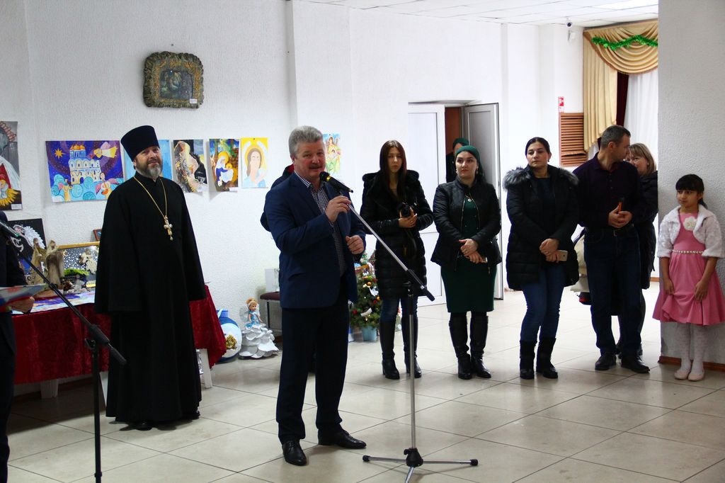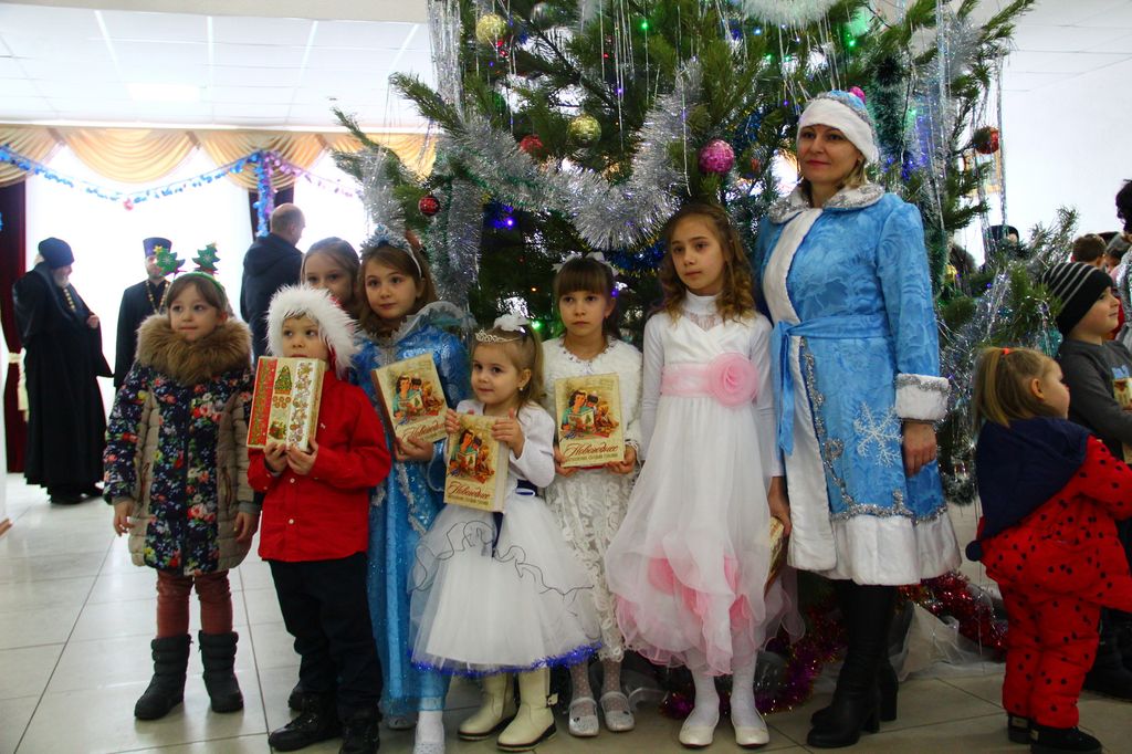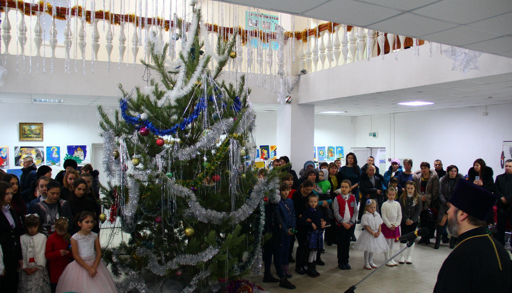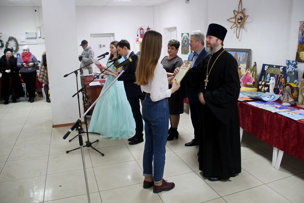 В районном доме культуры собрались взрослые и дети, чтобы вместе отпраздновать знаменательное событие – Рождество Христово, вместе порадоваться и разделить радость праздника. Фойе ДК оформлено красочной ёлкой и рождественской выставкой поделок и рисунков. Какие у нас талантливые дети, родители и преподаватели! Какое множество разнообразия работ! За участие и победу в конкурсе учащиеся школ и воспитанники детских садов района получают грамоты, духовную литературу и сувениры. Воспитанники школ, детской школы искусств, детской спортивно-юношеской школы и центра дополнительного образования показывают чудесную концертную программу. Здесь чтение стихов и прозы, танцевальные номера, песни, посвящённые рождению Господа Иисуса Христа, и миниатюры. Красочные, нарядные костюмы, душевность исполнения создают атмосферу семейности, уюта и тепла.