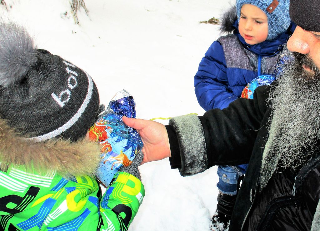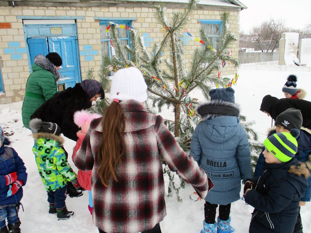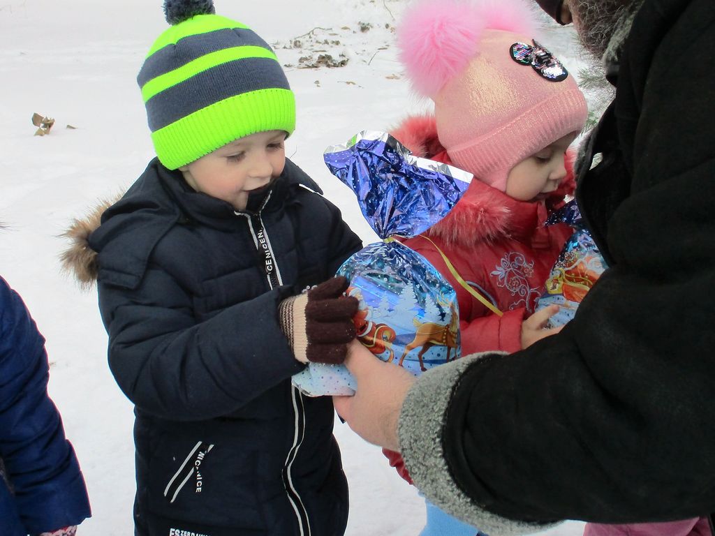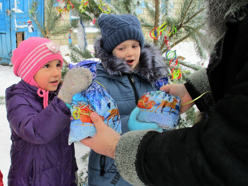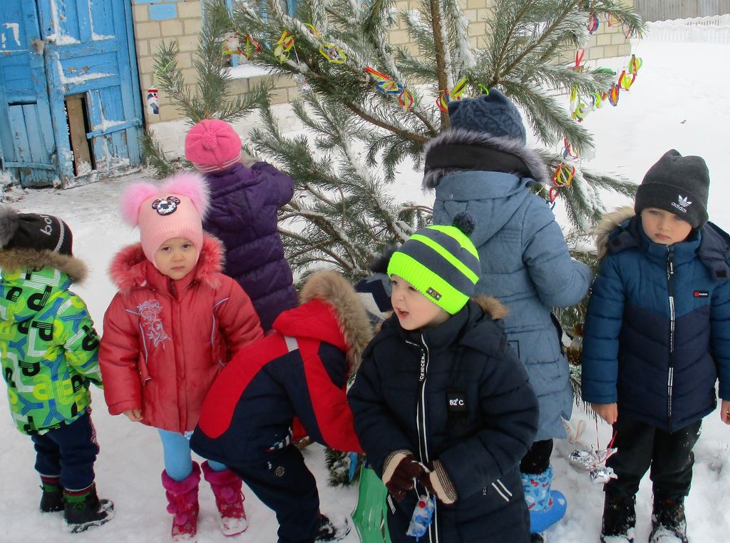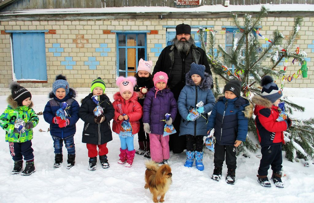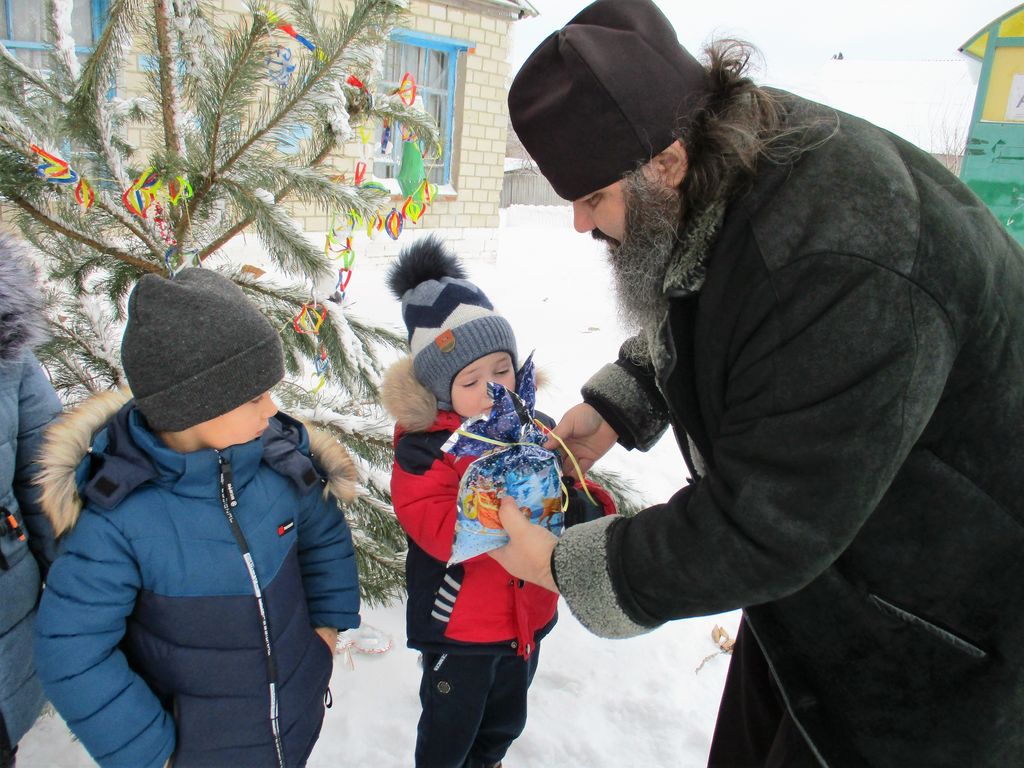 После того, как малыши украсили елочку, стоящую напротив Дворца Культуры хутора Песковатско-Лопатинского, священнослужитель настоятель Смоленского храма станицы Шумилинской иерей Александр Туховский поздравил их с наступающим Рождеством Христовым и Новолетием и подарил рождественские сладкие подарки!