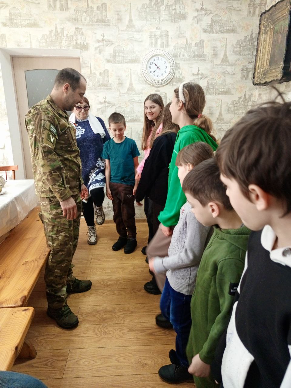 В воскресной школе «Светоч» при храме Матроны Московской города Донецка состоялась особенная встреча. К воспитанникам в гости пришёл ветеран специальной военной операции Юрий Игоревич Друк. Он поделился с ребятами своим военным опытом, рассказал о суровых, но героических буднях на передовой.