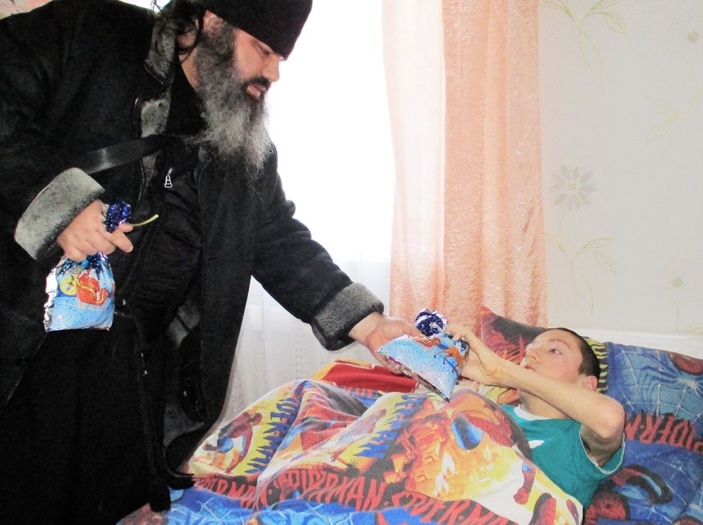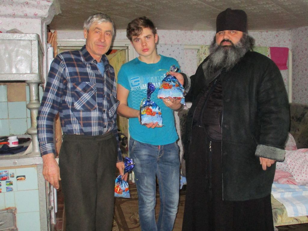 Настоятель Смоленского храма станицы Шумилинской иерей Александр Туховский посетил инвалидов с Рождественскими подарками