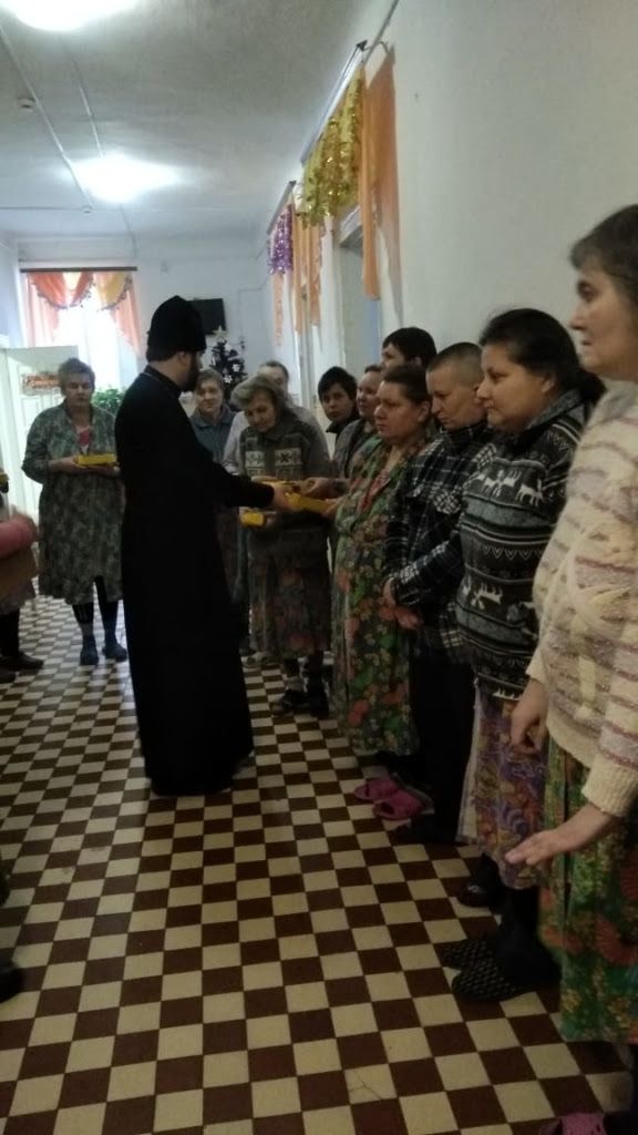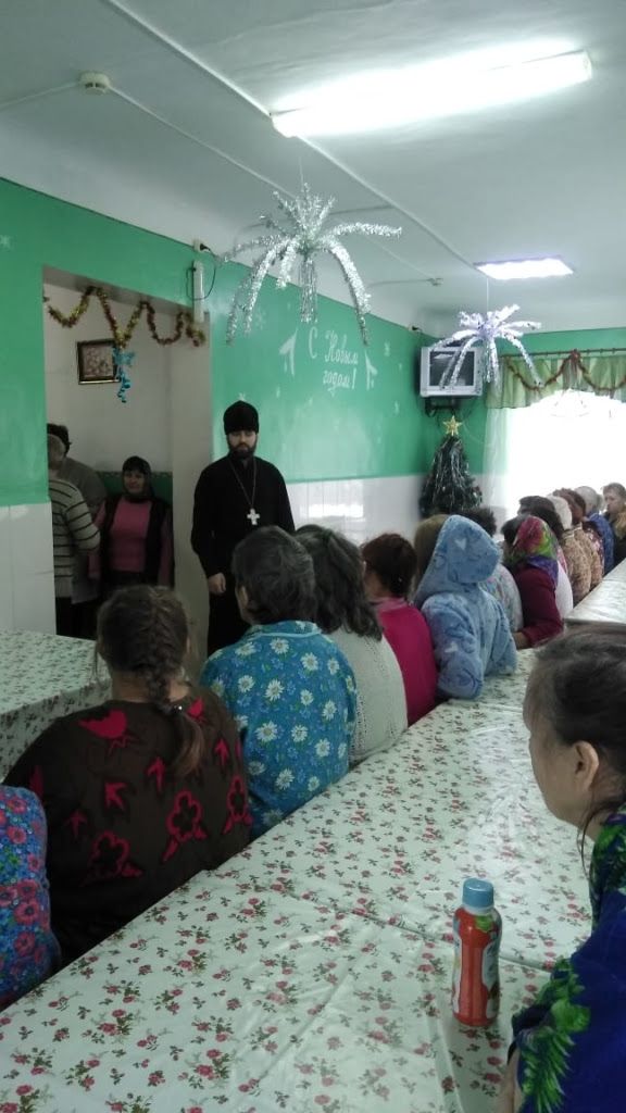Рождественский визит клирика Свято-Пантелеимоновского храма г. Миллерово иерея Георгия Лукащук и работников социальной службы к больным психо-неврологического диспансера х. Малотокмацкий