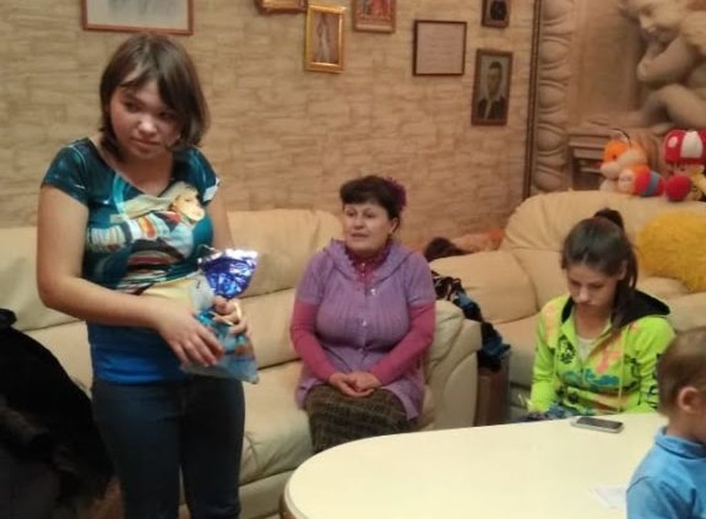 В рождественские святки сестры милосердия Свято-Пантелеимоновского прихода г. Миллерово с иереем Георгием Лукащук побывали в гостях у многодетной семьи Музинитовой Натальи Ивановны. Дети с радостными криками встретили на пороге православных гостей. На вопрос мамы к детям "Кто к нам пришел?" один малыш ответил "Бозинька", что вызвало у всех радость и понимание.