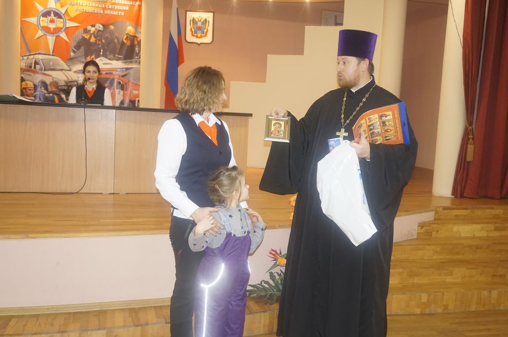 Спасатели ГКУ РО «Центр информационного обеспечения безопасности населения» подвели итоги работы за год. От имени духовенства Шахтинской епархии спасателей поздравил протоиерей Роман Амплеев