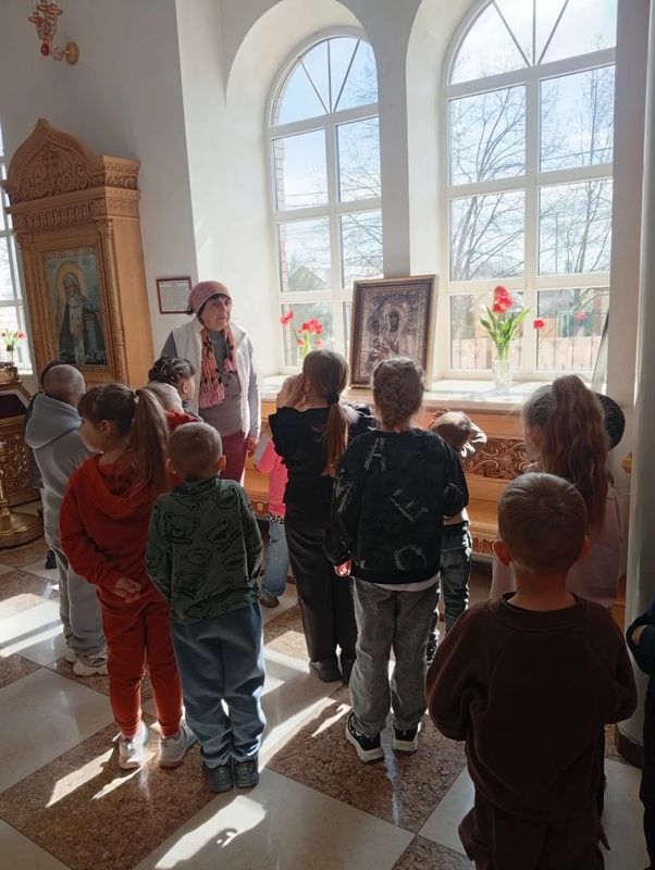 15 апреля по благословению благочинного иерея Владимира Татаркина и согласно рекомендациям Синодального миссионерского отдела о проведении акций в пасхальный период в храме Державной иконы Божией Матери состоялась экскурсия «Откуда пришёл праздник — Воскресение Христа». В экскурсии приняли участие воспитанники старшей и подготовительных групп детского сада №7 «Соловушка» вместе с родителями.