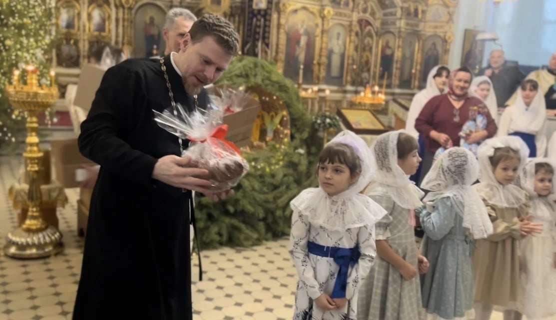 По окончании концерта отец Глеб поздравил всех с праздником и вручил юным артистам сладкие подарки, выпеченных по старинному рецепту рождественских агнцев, книги «Жития святых» и имбирные пряники. Завершился праздник общим памятным фотографированием.