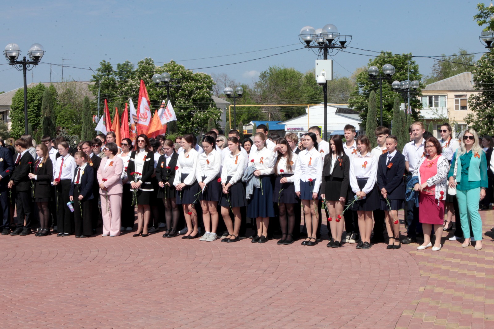 В преддверии 80-й годовщины Победы в Великой Отечественной войне в п. Каменоломни прошла торжественная церемония возложения гирлянды Славы, венков и цветов к Вечному огню.