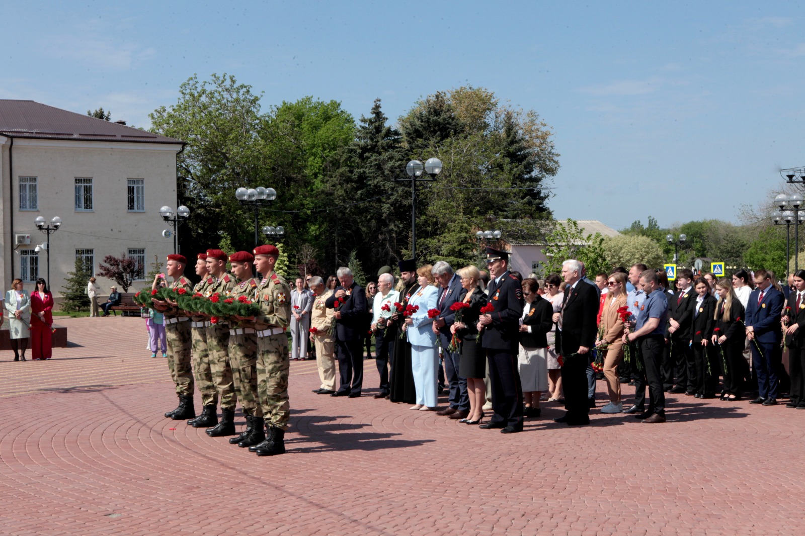 В знак общей печали о погибших во время войны жители возложили цветы к Вечному огню на площади 50-летия Победы, на Аллея Героев Советского Союза, России и Социалистического труда, к мемориалу «Аллея памяти».