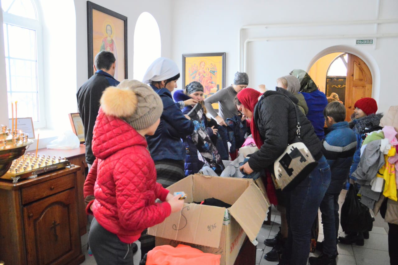 После окончания торжественной части социальные работники храма вручили каждому рождественский подарок и помогли выбрать подходящую новую одежду.