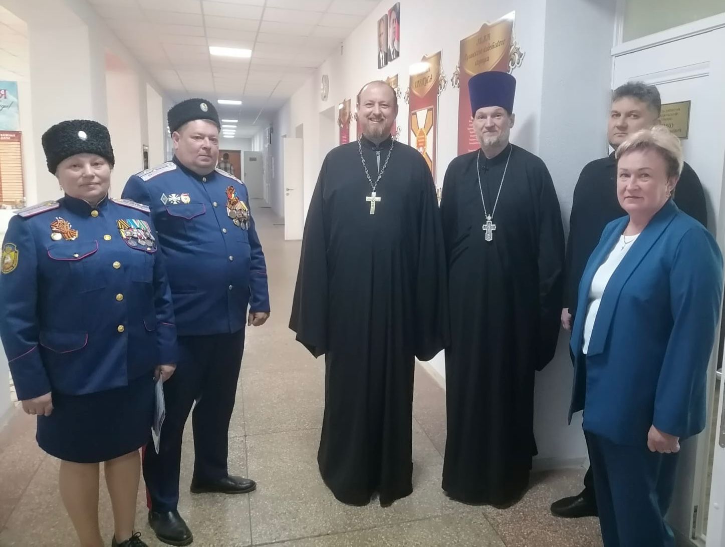В мероприятии принял участие протоиерей Роман Амплеев, настоятель Донского храма, благочинный приходов Новошахтинского округа, председатель епархиального Отдела по взаимоотношениям Церкви с обществом и атаман станицы Мало-Несветаевской МСОО ВВД Сыч Владимир Федорович.