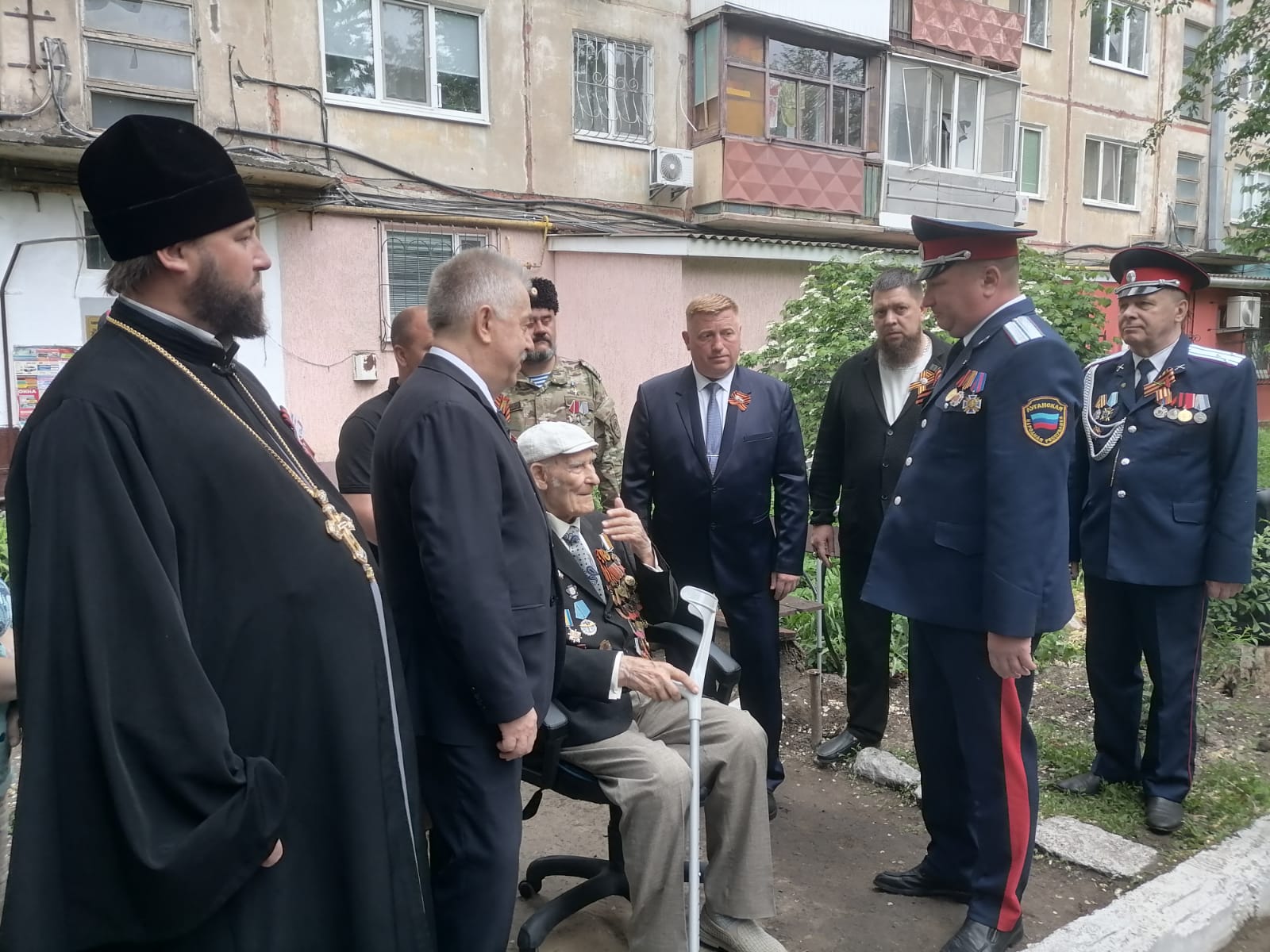 Кадеты Республиканского казачьего кадетского корпуса имени маршала авиации Александра Ефимова провели масштабный парад у дома ветерана Оленина Ивана Федоровича.