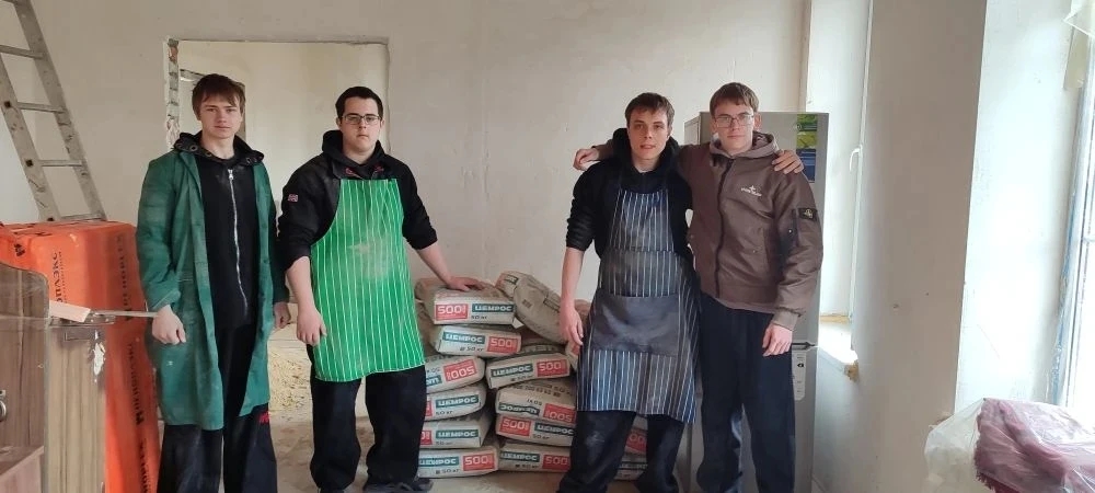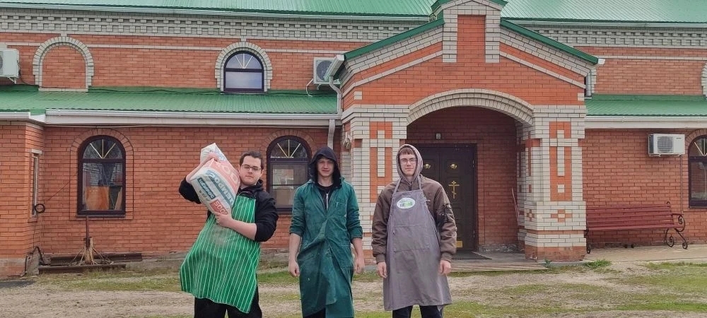 Отряд студентов-волонтёров «Доброхоты» Донецкого промышленно-гуманитарного техникума кума продолжает помогать строить Воскресную школу храма Державной иконы Божией Матери.