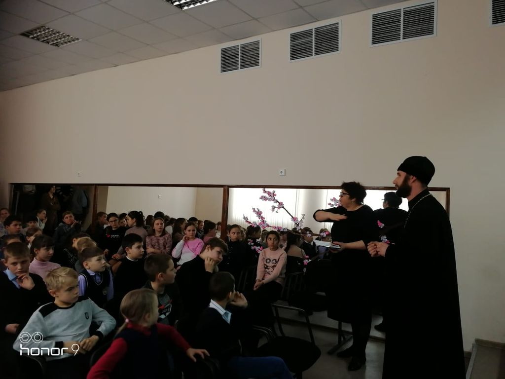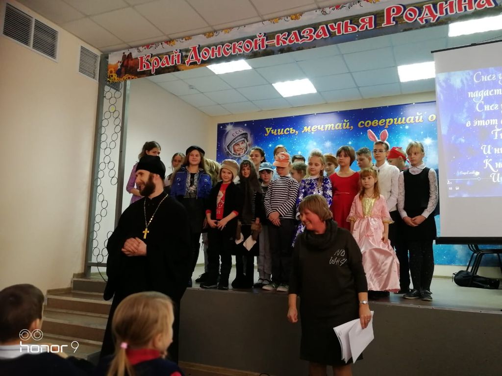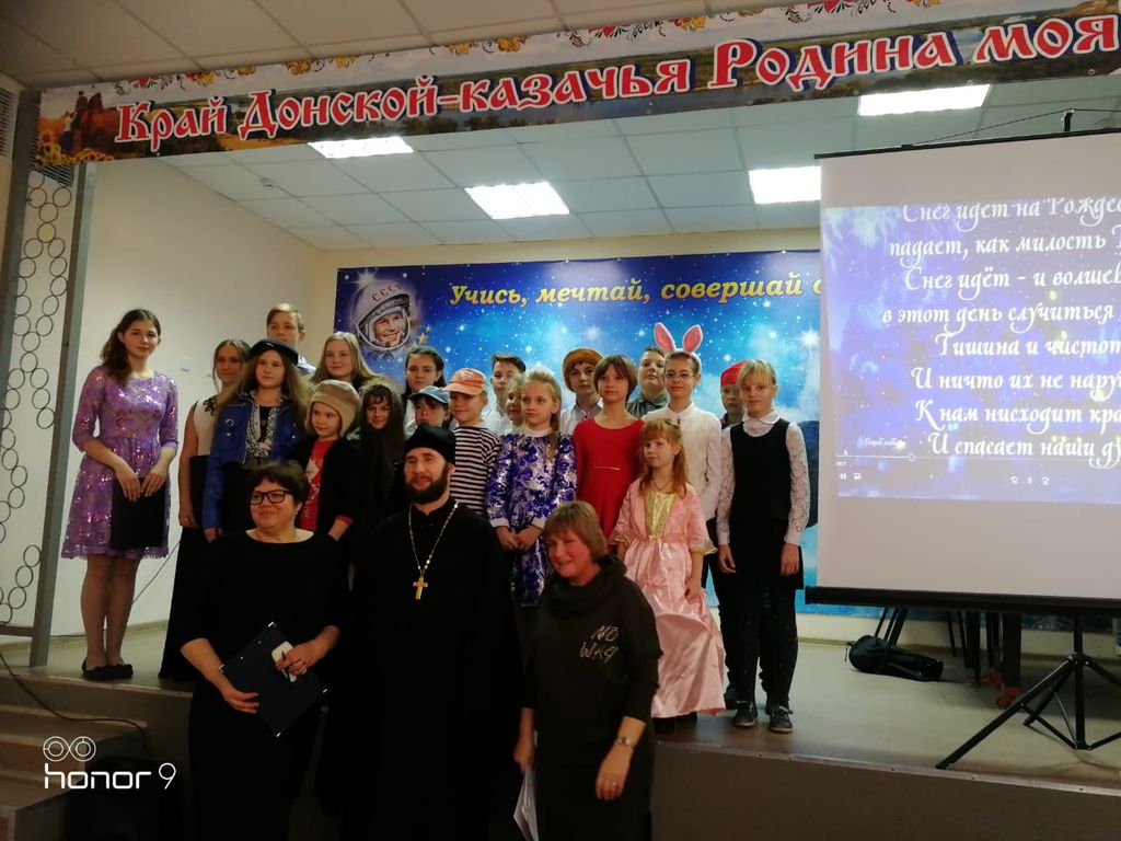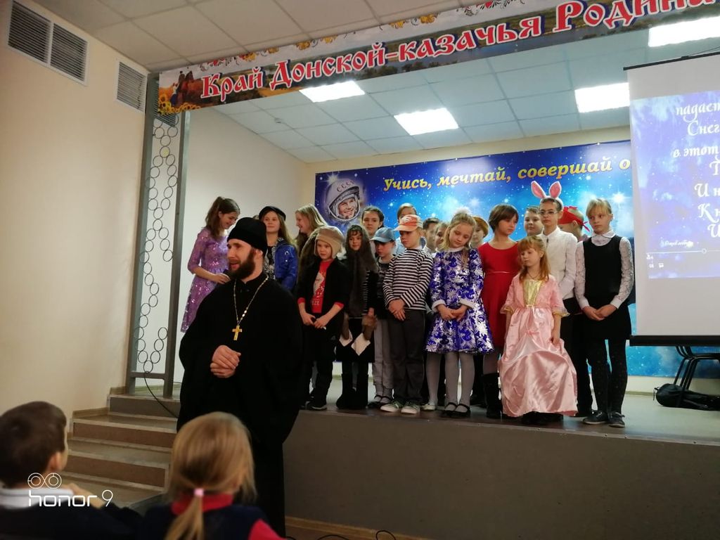 Воспитанники воскресной школы «Святоч» при храме святого благоверного князя Александра Невского г. Шахты провели Рождественский концерт для детей школы №14 г. Шахты