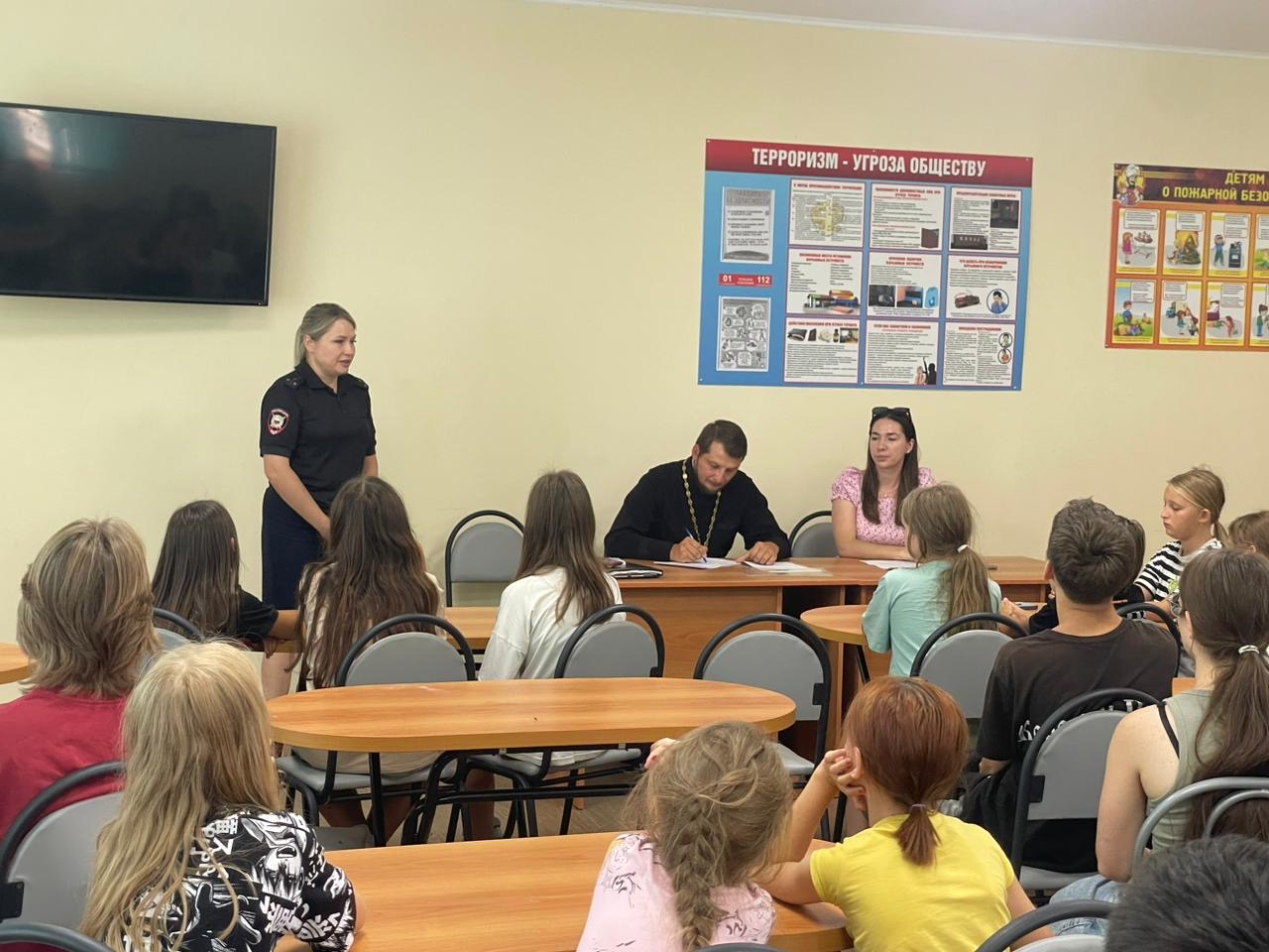 В детском лагере «Колосок» филиала МБОУ «Дом детского творчества» Боковского района состоялась встреча межведомственной лекторской антинаркотической группы Боковского района, в состав которой вошли: настоятель храма Иоанна Предтечи станицы Боковской иерей Александр Левчик, инспектор по делам несовершеннолетних Т.В. Ситникова, методист МБУ «РМК» Боковского района И.В. Вислогузова.