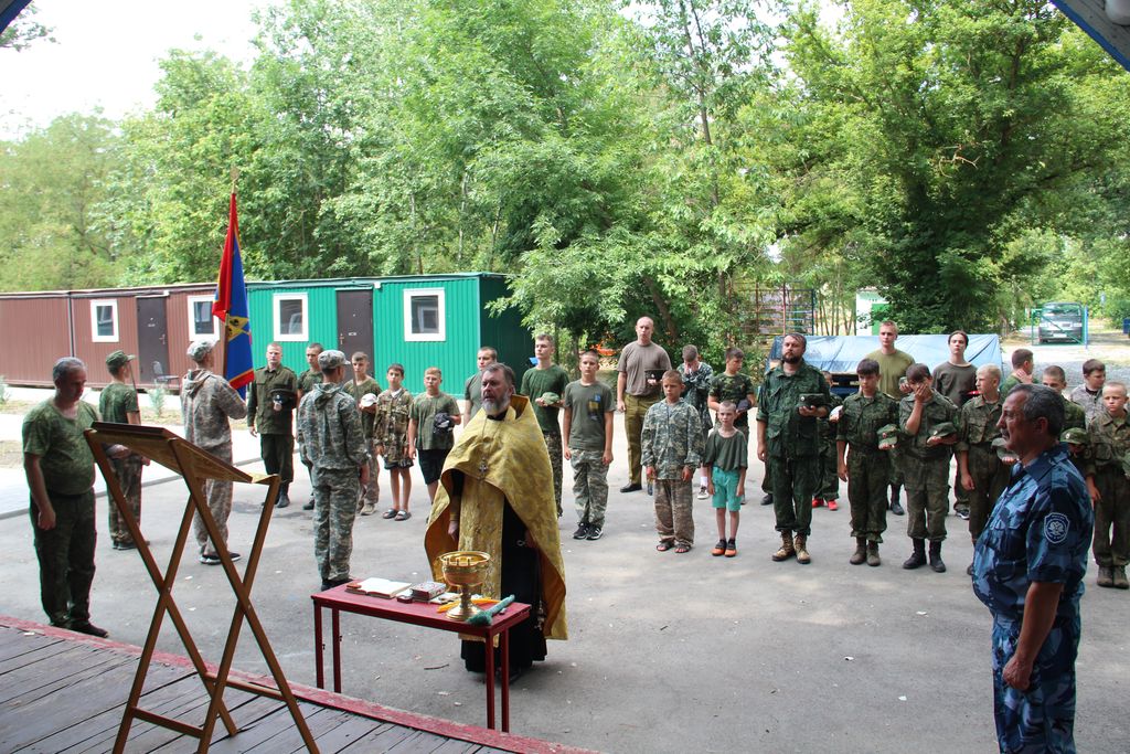 Протоиерей Александр Маштанов совершил Благодарственный молебен, в поздравительном слове направленном к казачатам, отметил, что ребята прошли военно-полевые сборы, укрепляясь духовно и телесно, открыли для себя новые познания военной науки, переняли и уместили в себя опыт наставников. Пожелал быть достойными приемниками наших славных предков-казаков, хранить Веру Православную, быть достойными защитниками Отечества и Родины.