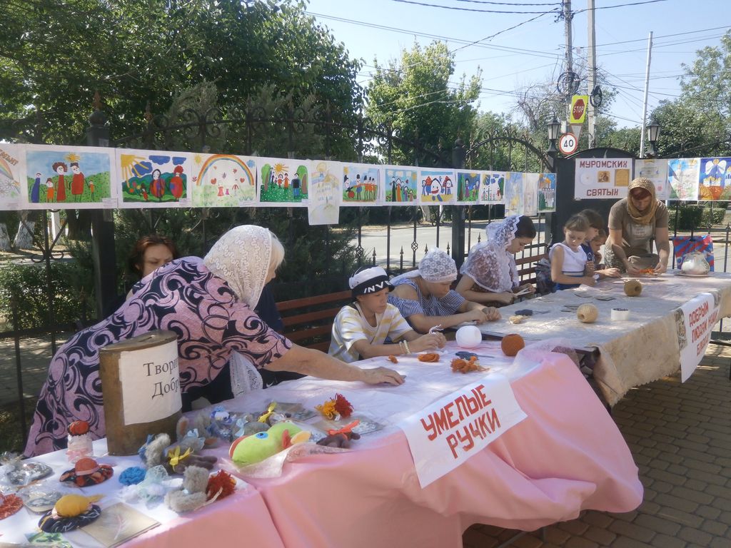 С 7 по 10 июля в соответствии с совместным проектом «Наследие» Отдела религиозного образования и катехизации Донецкого округа, Отдела по работе с молодежью Администрации г. Донецка, МУ ОО, клуба духовной культуры «Веков связующая нить», духовно-просветительского клуба «Свет добра», РРОСВДИДС «Ветер перемен» прошел городской фестиваль православной культуры «Семья – малая церковь», посвященный памяти Муромских святых князей Петра и Февронии и Дню семьи, любви и верности на территории храма Державной иконы Божией Матери и в клубе «Веков связующая нить», при филиале детской библиотеке им. А. Гайдара.