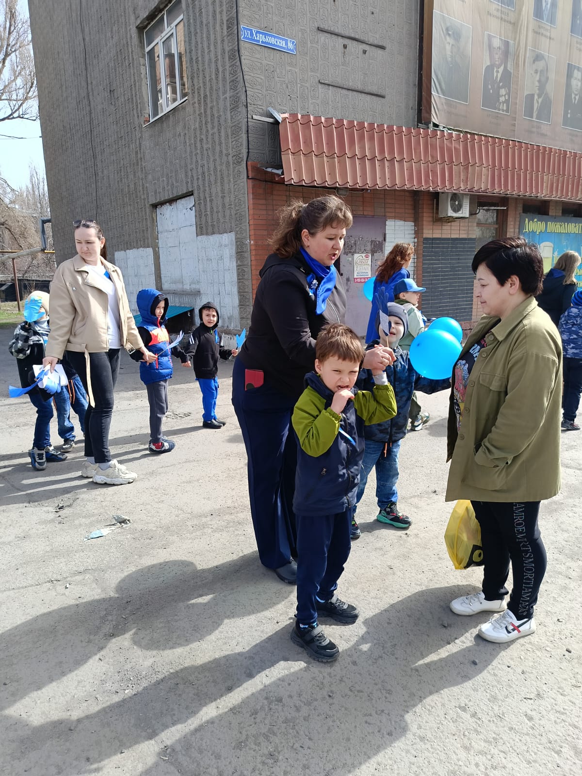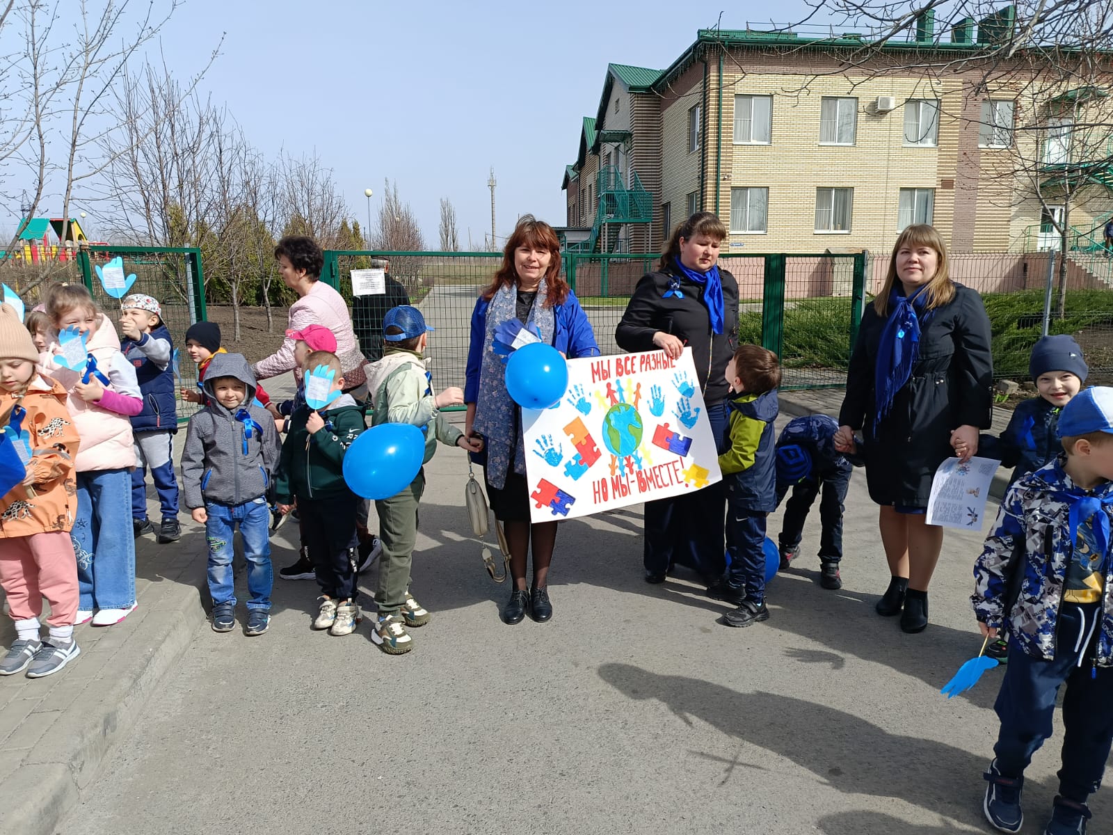 С самого утра во всех трёх корпусах проводились мероприятия, посвящённые этой теме. А на детской площадке Н. Водяновой дети подготовительных групп совместно с воспитателями раздавали прохожим памятки и синие воздушные шары. Эти маленькие символы стали напоминанием о важности включения каждого ребенка в общество.